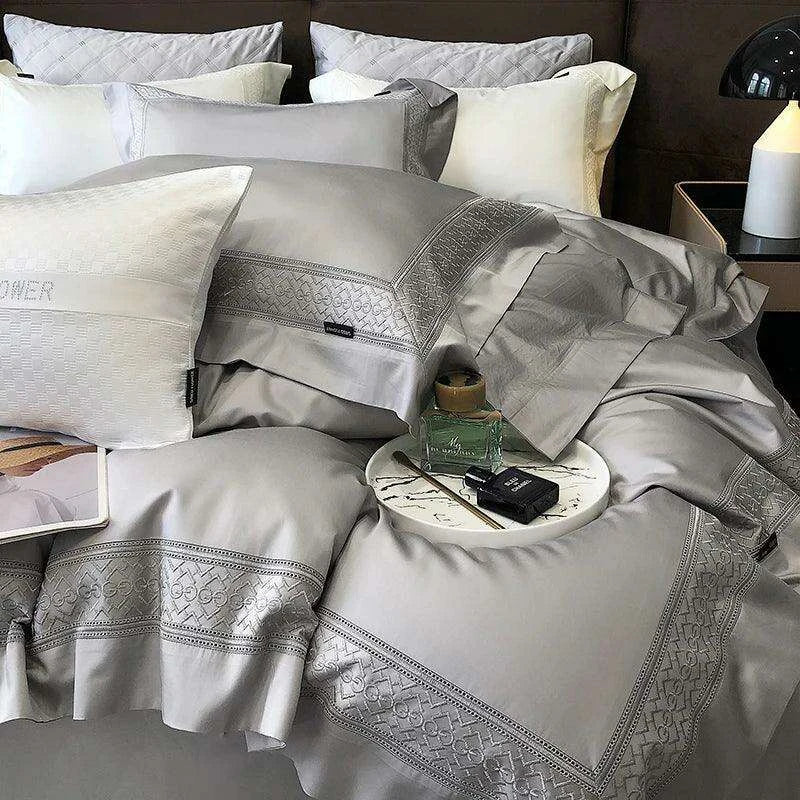 Transform your bedroom into a luxurious retreat with our Luxurious 1000TC Egyptian Cotton Embroidered Bed Linen Set - Includes Duvet Cover, Sheet & Pillowcases for King & Queen Sizes. This exquisite bedding collection is crafted for those who cherish both style and comfort, promising to elevate your sleeping experience to new heights.