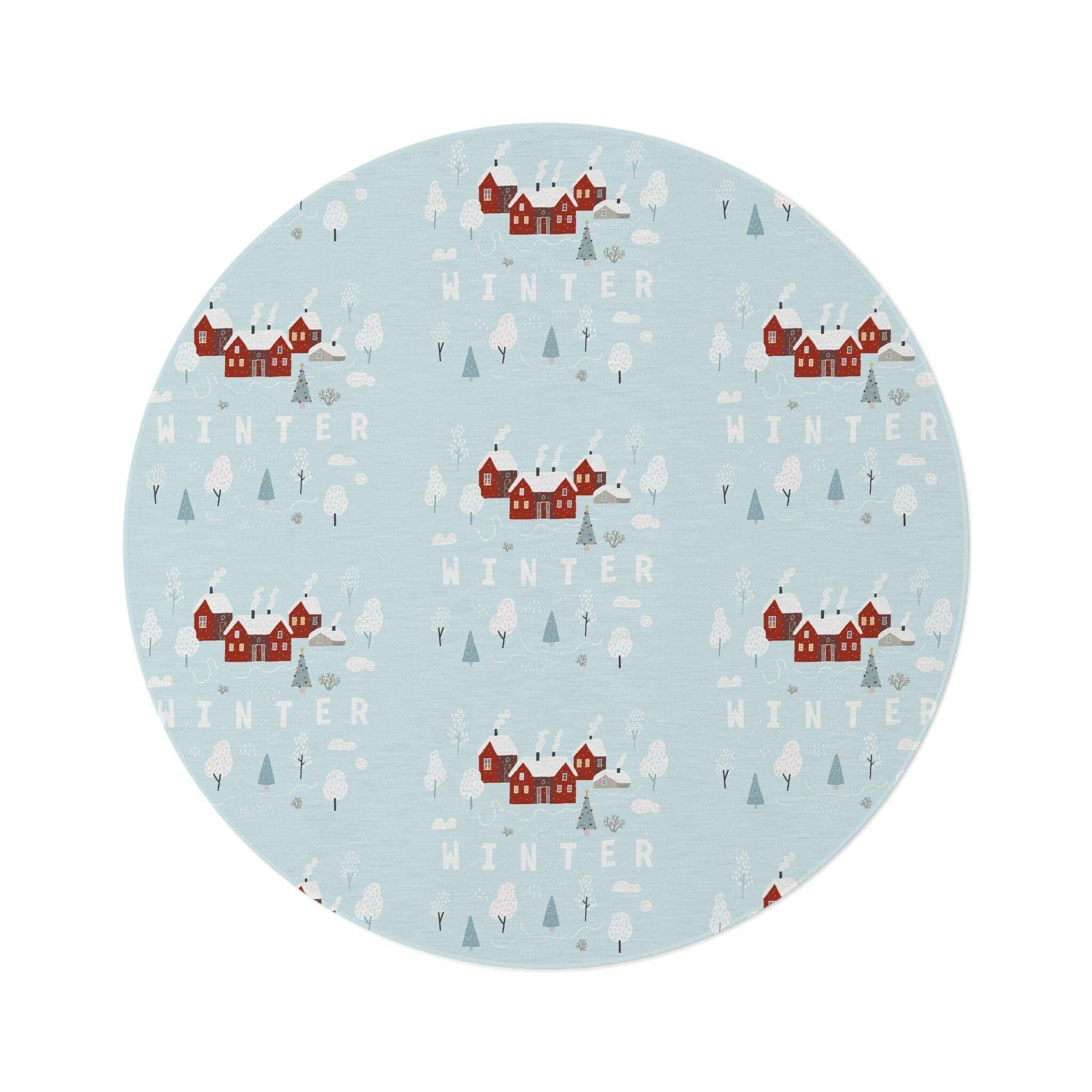 Luxurious 60" Chenille Holiday Round Rug - Enchanting Winter Wonderland Style