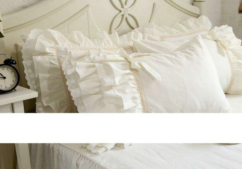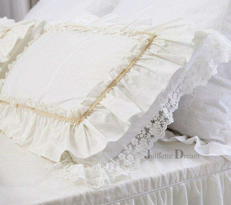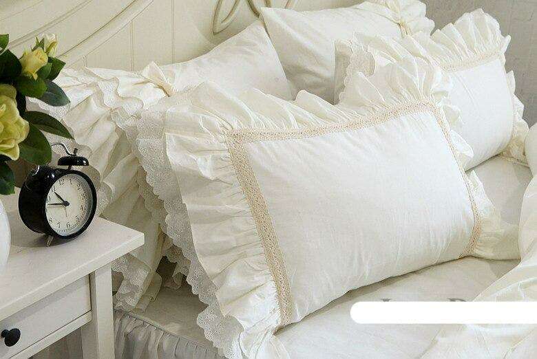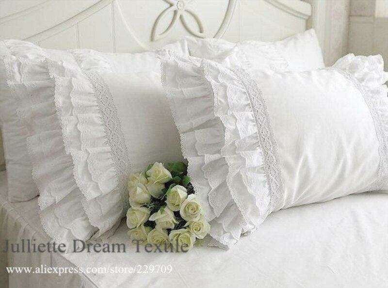 • Delicate Satin Lace Ruffle Detailing: Each pillowcase is adorned with intricate satin lace ruffles, adding a refined touch to your bedding.