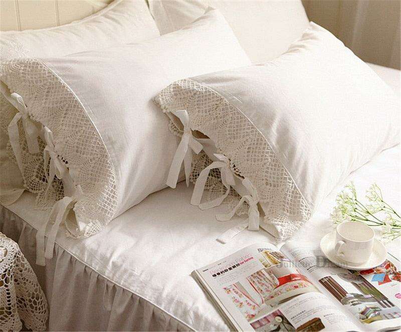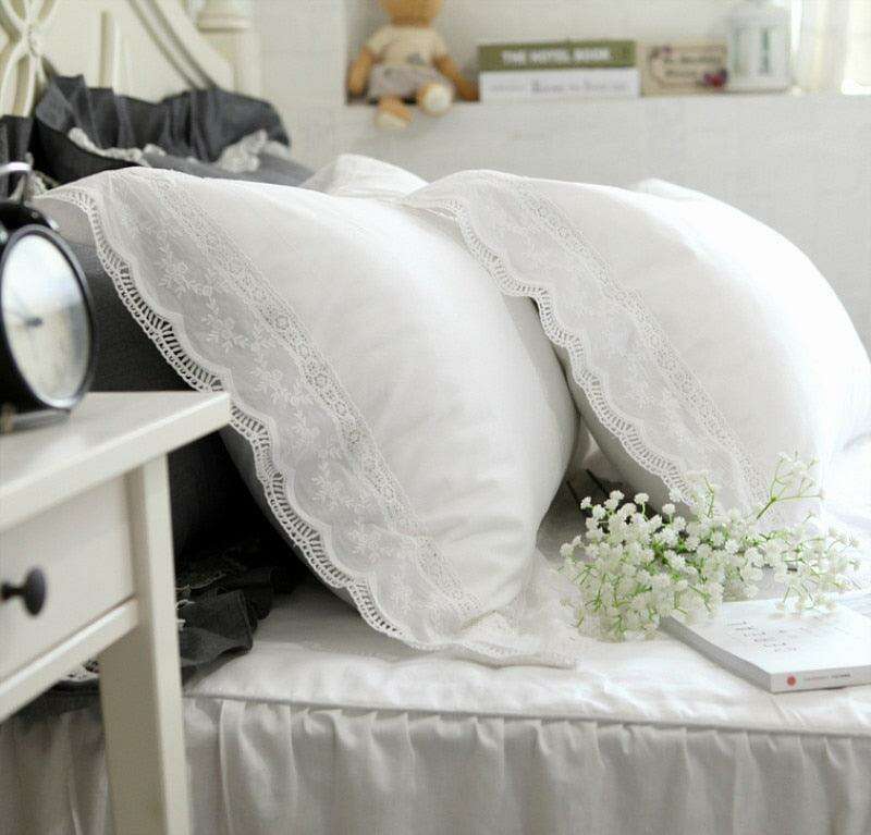 Luxurious European-Style White Satin Lace Pillowcase Set - Infuse Your Bedroom with Elegance