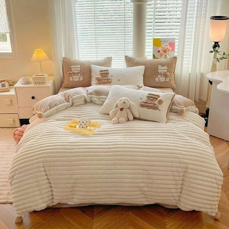 Luxurious Faux Rabbit Velvet Duvet Cover Set - Plush Bedding Collection with Pillowcases in Multiple Sizes