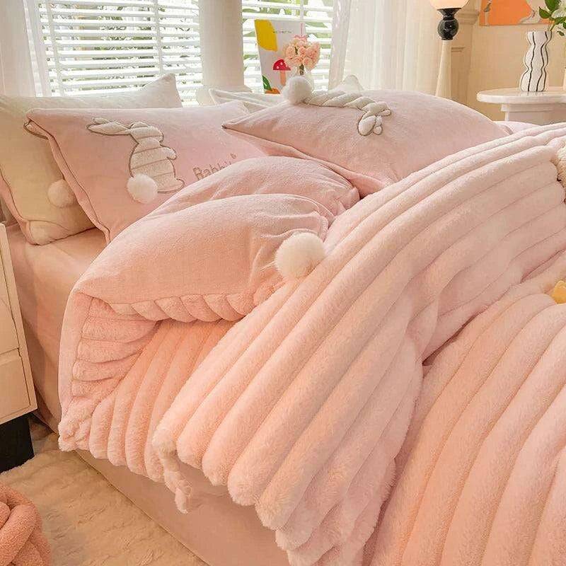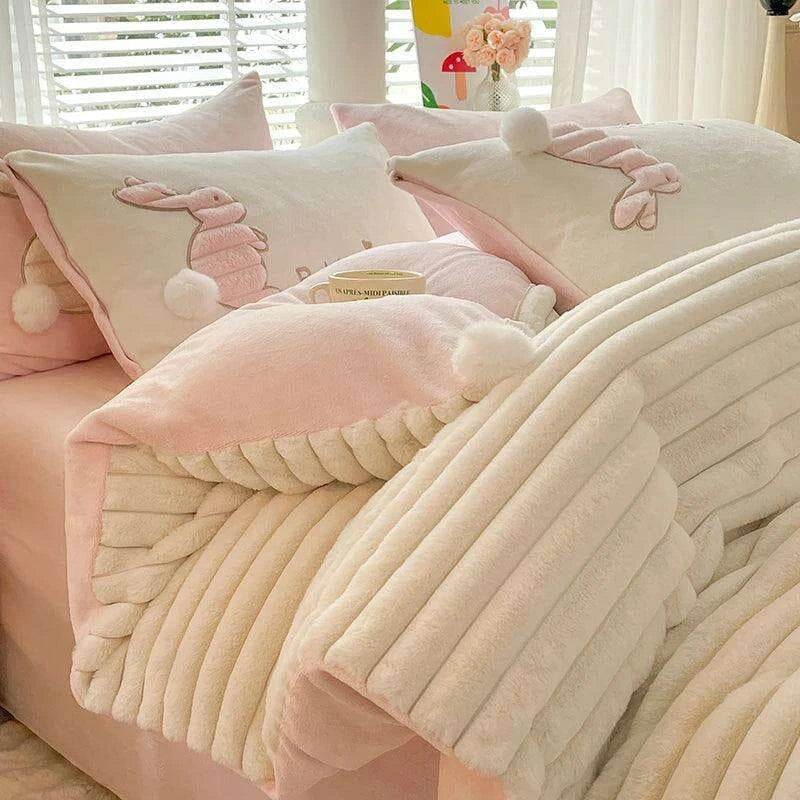 • Adorable Aesthetics: With charming rabbit-themed pillowcases, our bedding enhances the overall ambiance of your bedroom, making it a delightful retreat.