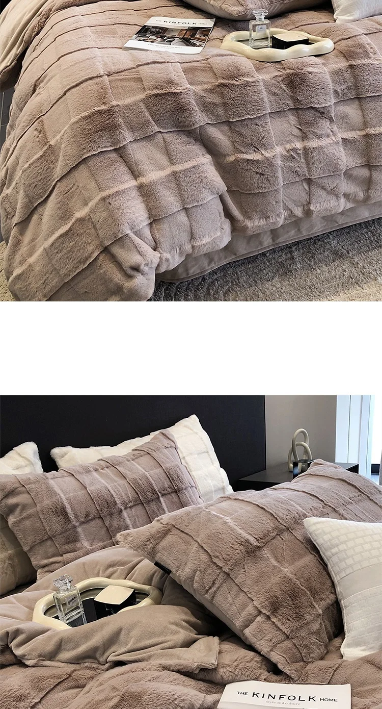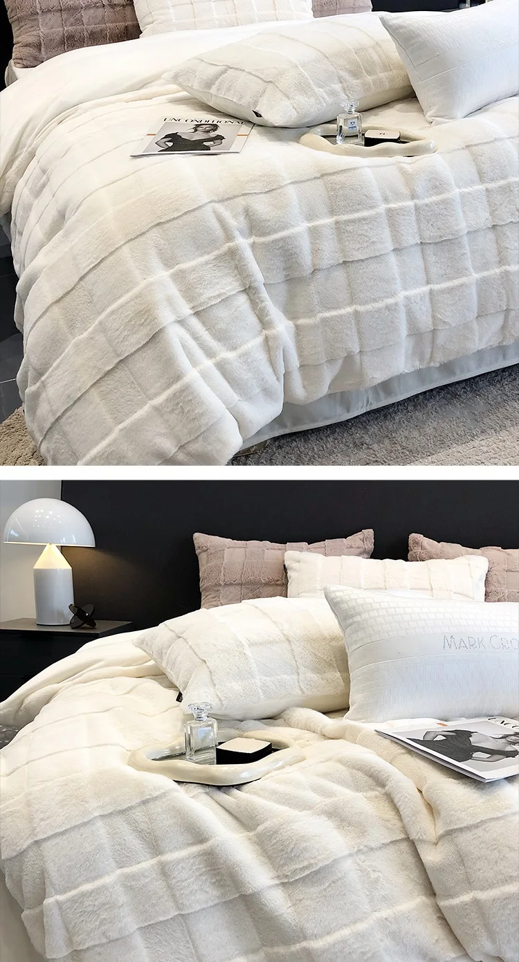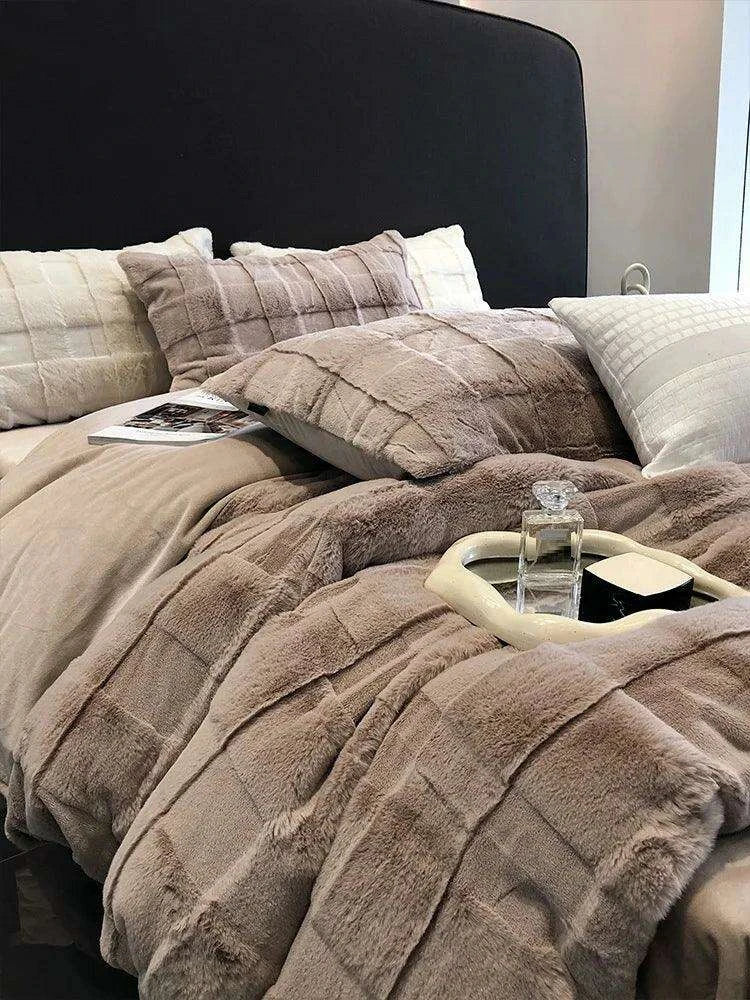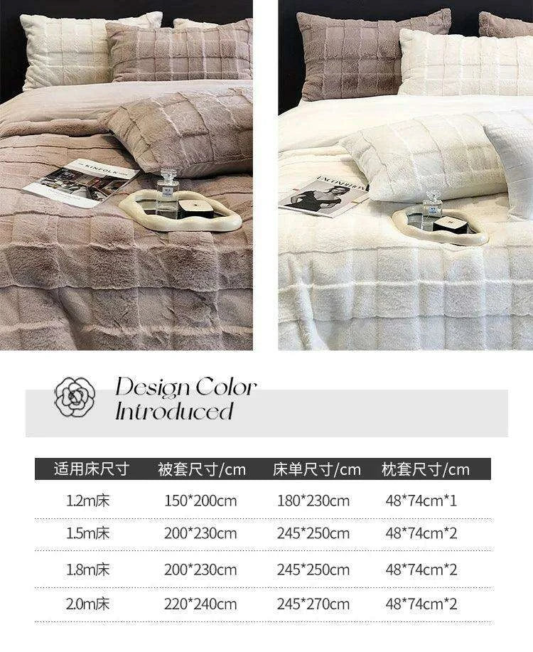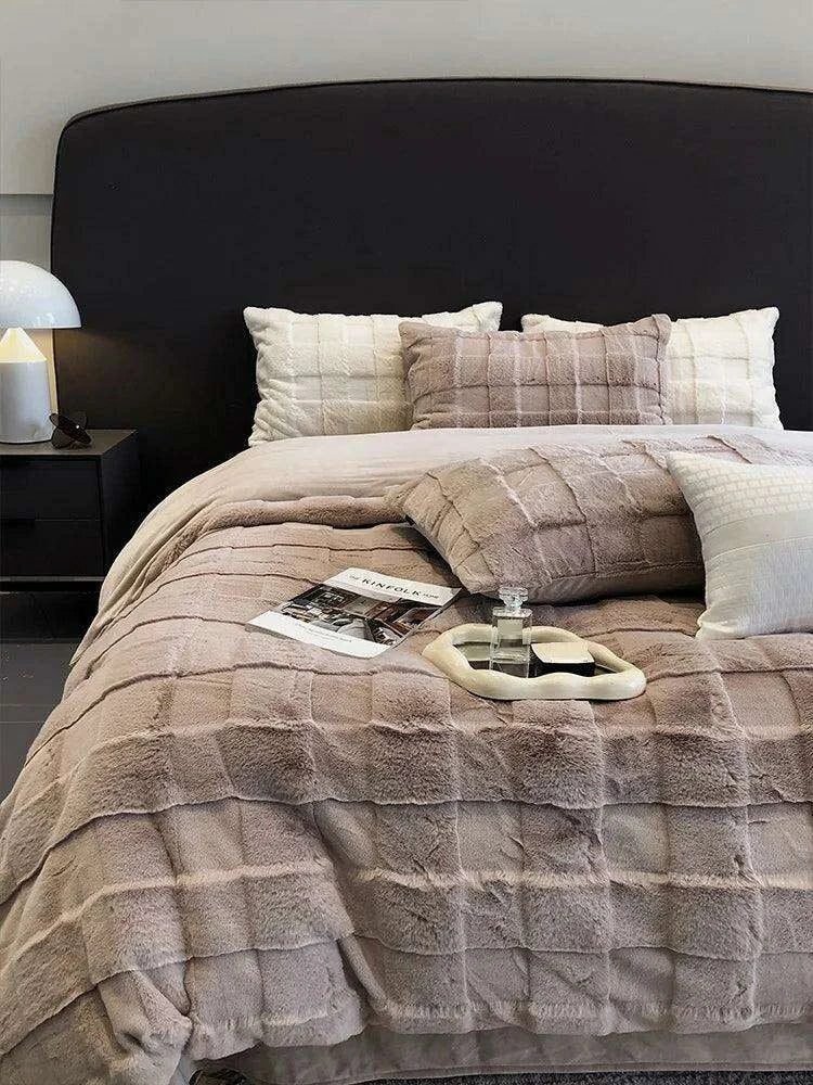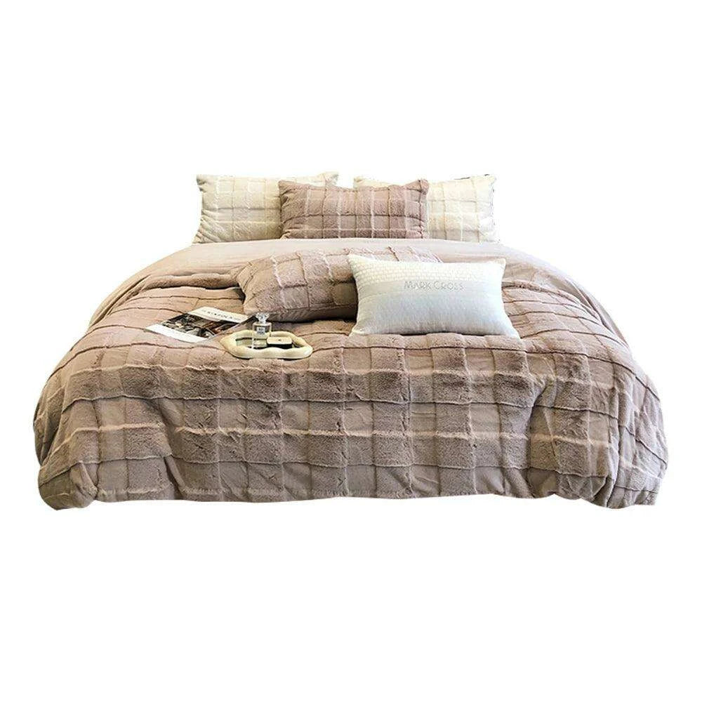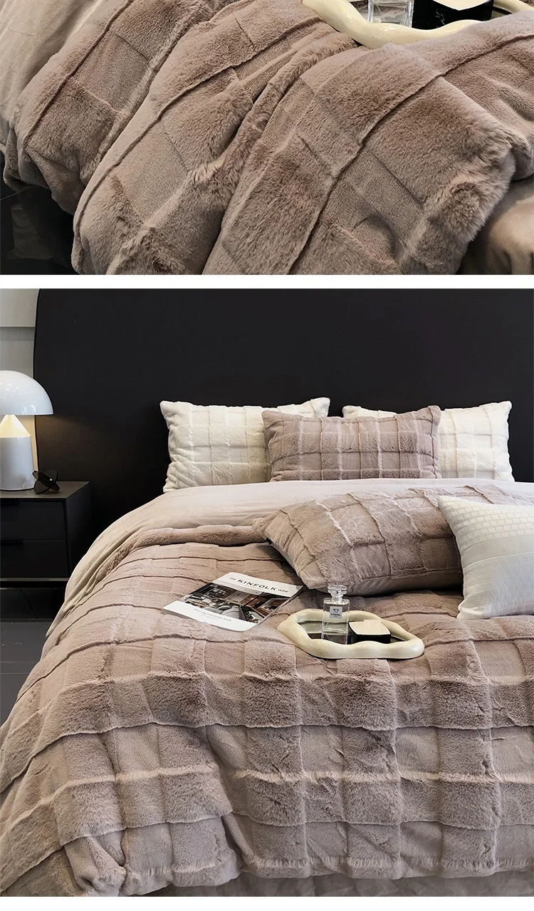 Plush Milk Velvet Duvet Cover Set with Chic Square Lattice Design - Ultra Soft 4-Piece Bedding Collection
