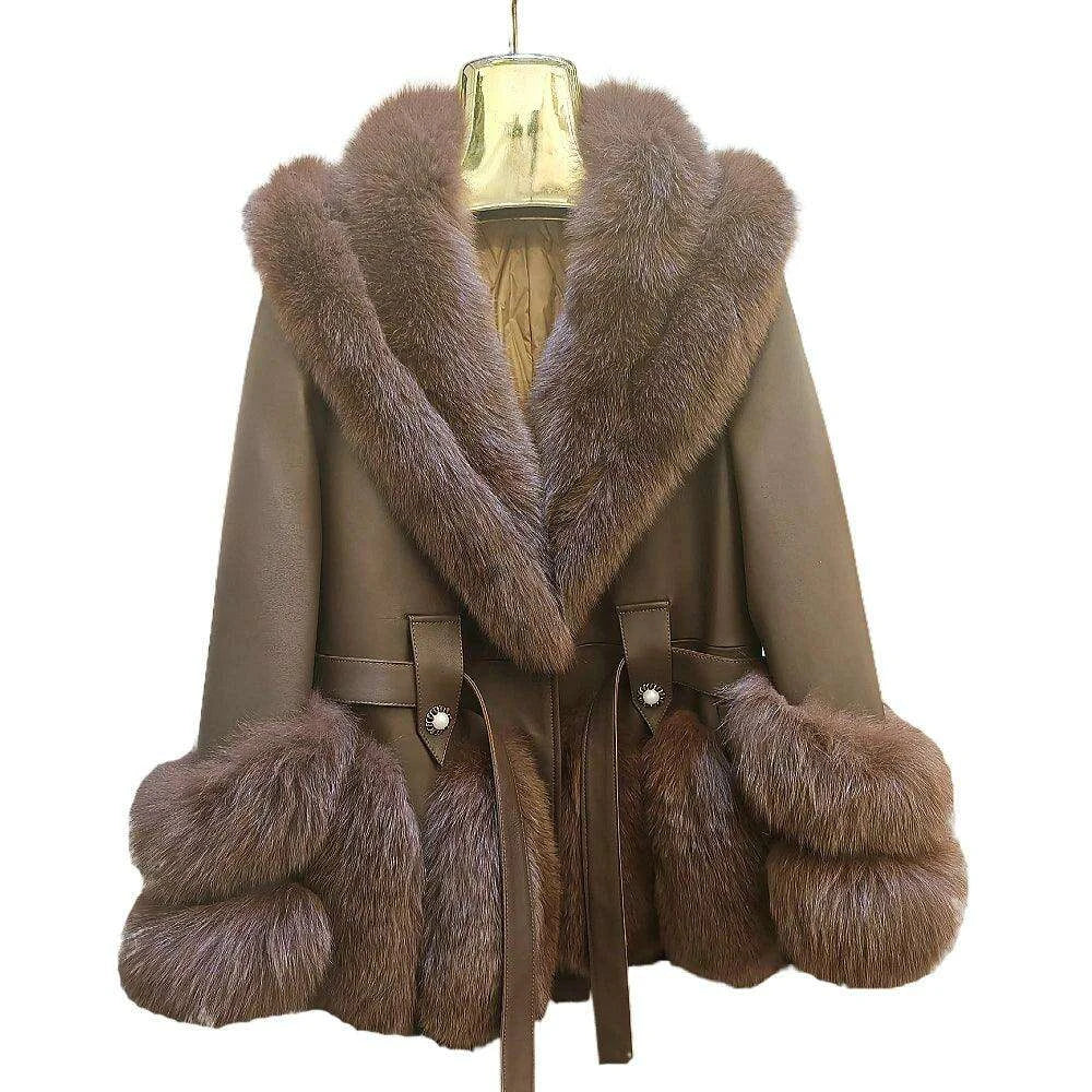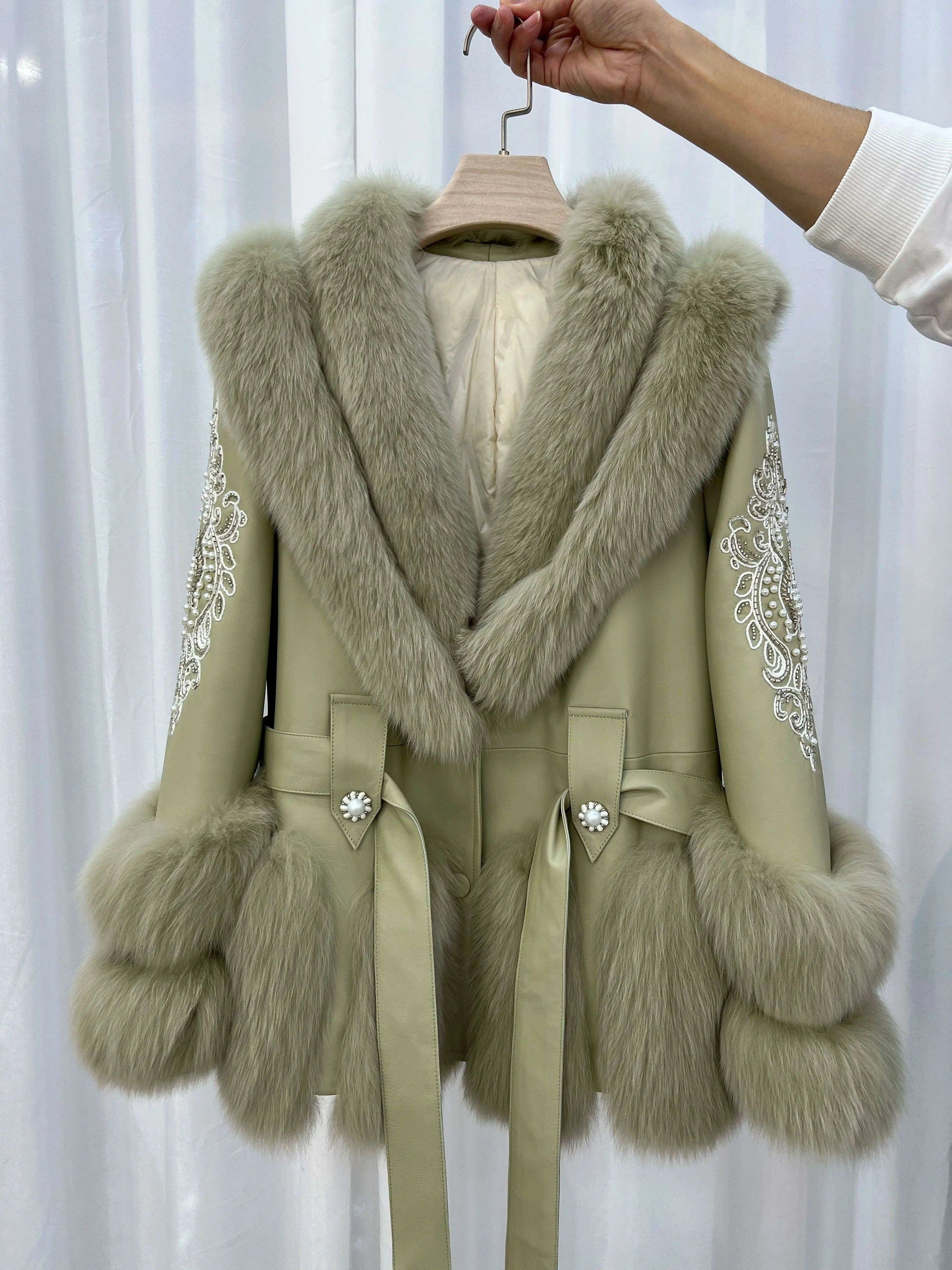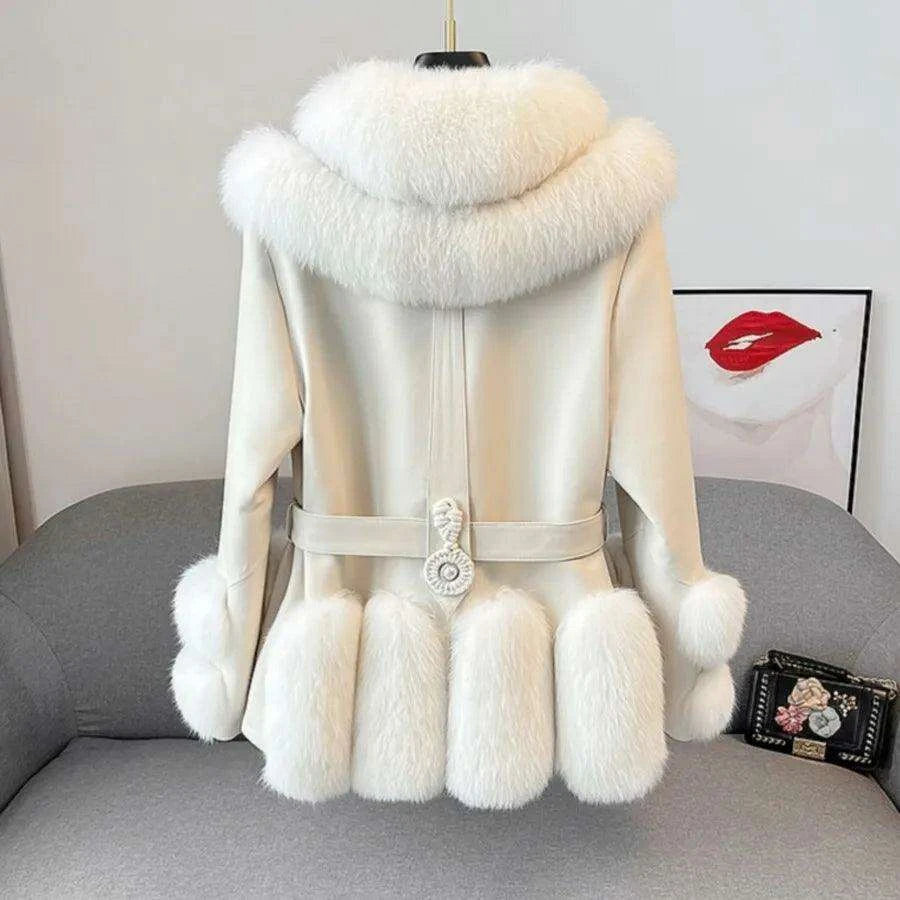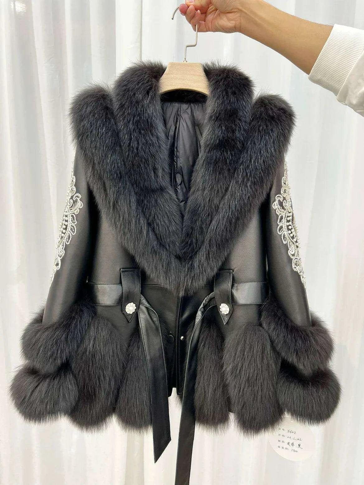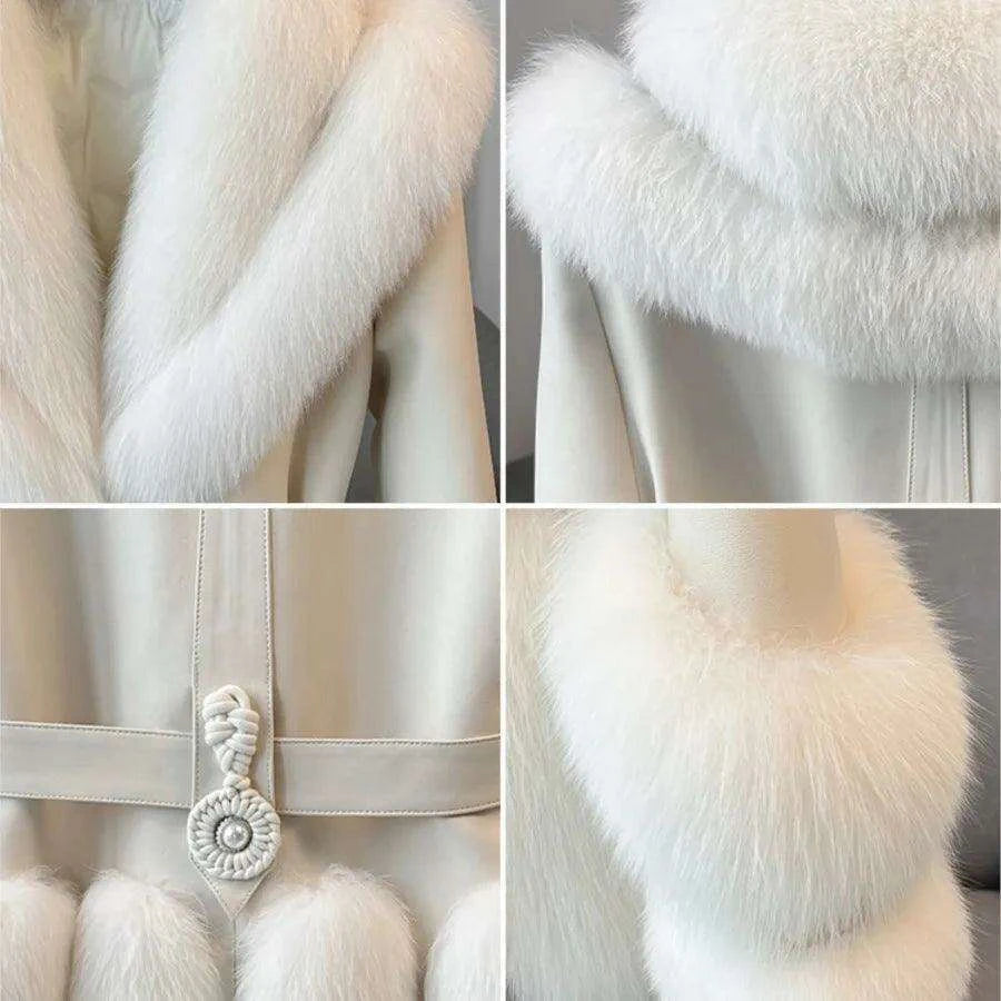 Luxurious V-neck Fox Fur and Sheepskin Winter Coat