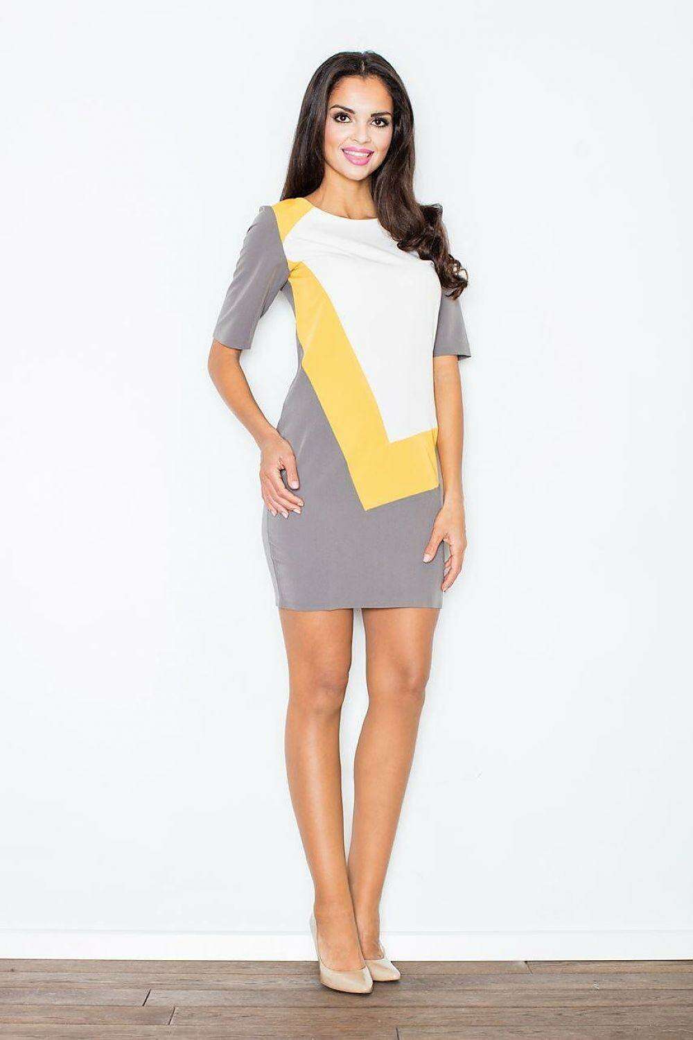 Modern Chic Geometric Day Dress with Stylish Zip Closure