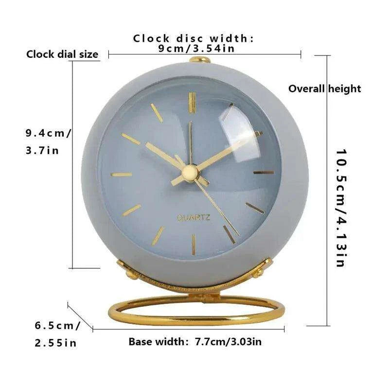 Modern Metal Frame Analog Alarm Clock with Soft Night Light – Chic Home Accent & Perfect Gift