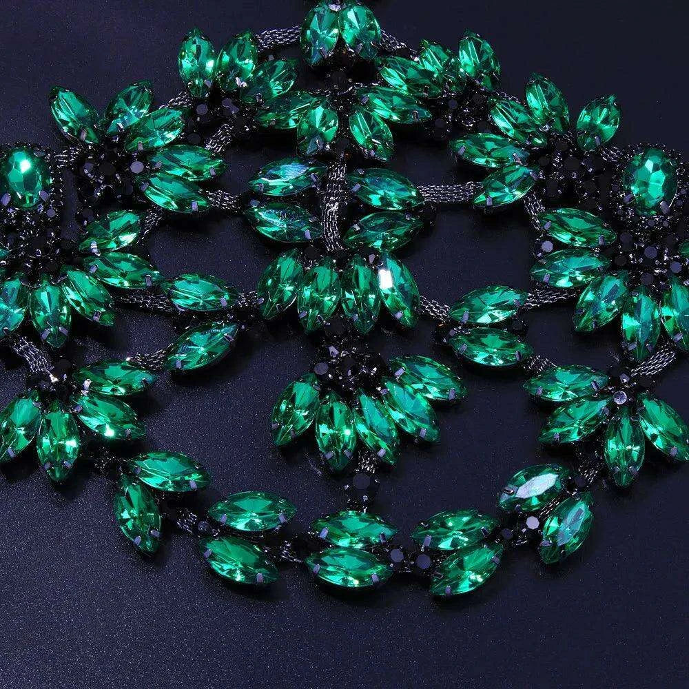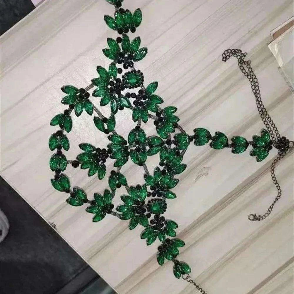 Enchanted Green Rhinestone Masquerade Face Chain with Dazzling Crystal Accents - Ideal Gift for Women