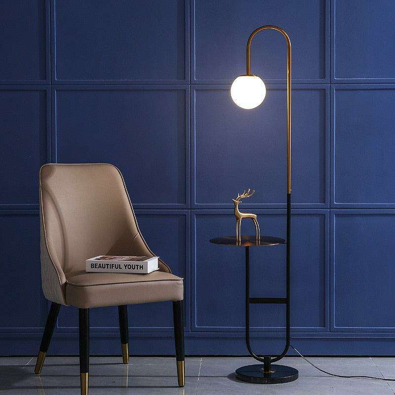 Contemporary Nordic LED Floor Lamp with Integrated Round Side Table