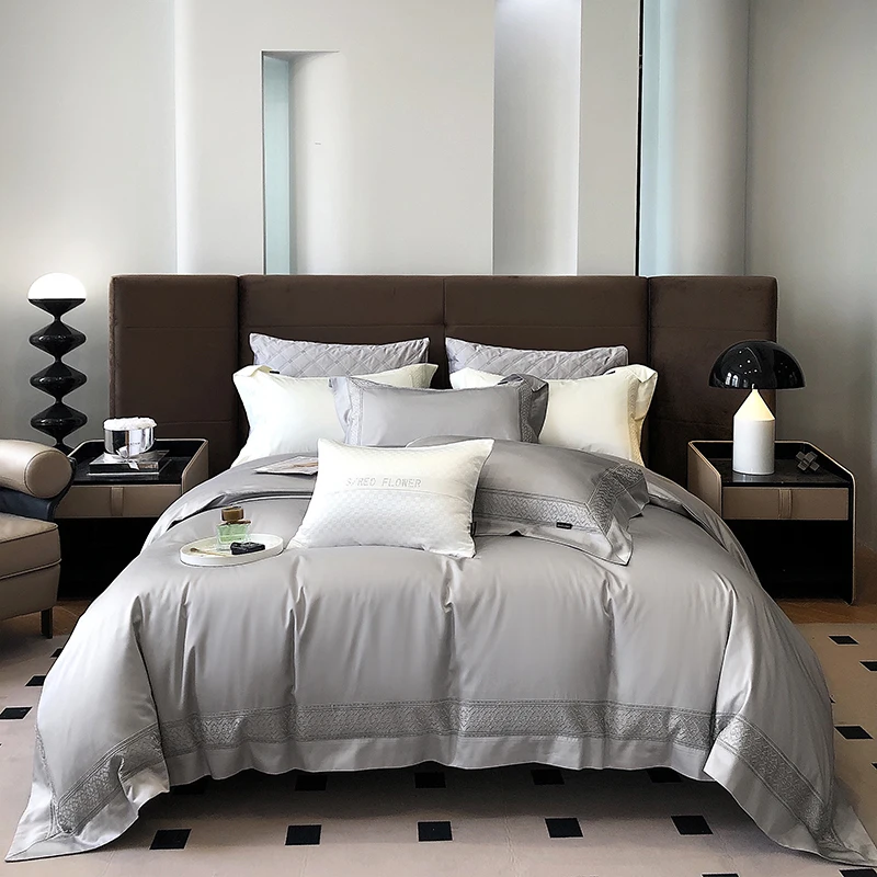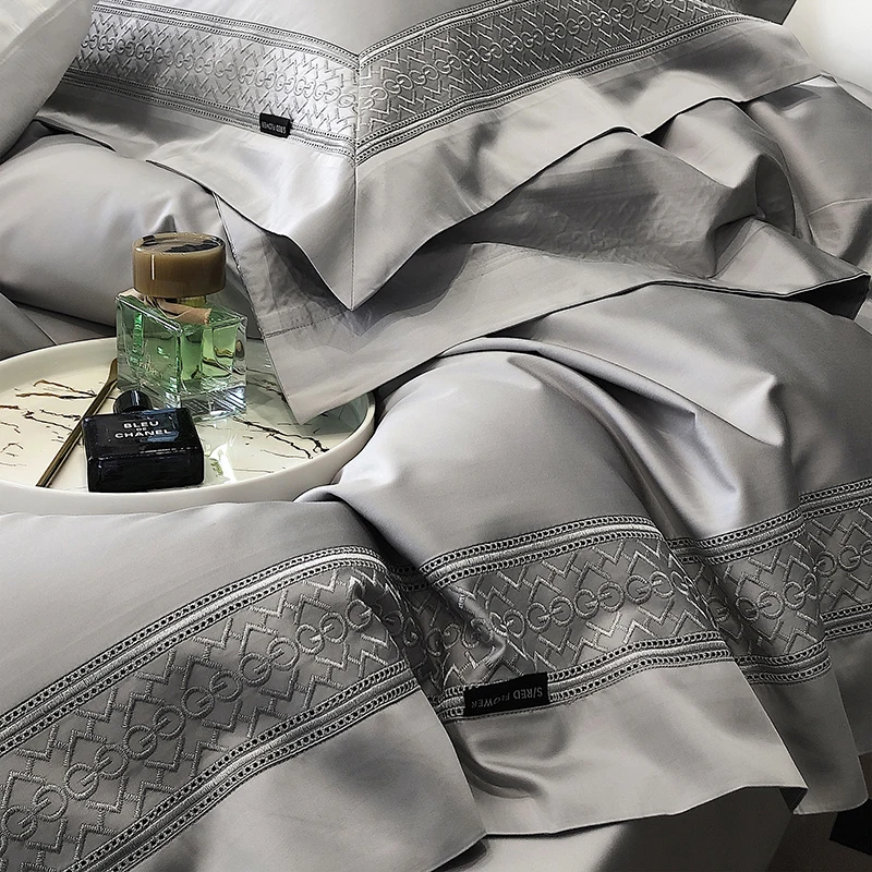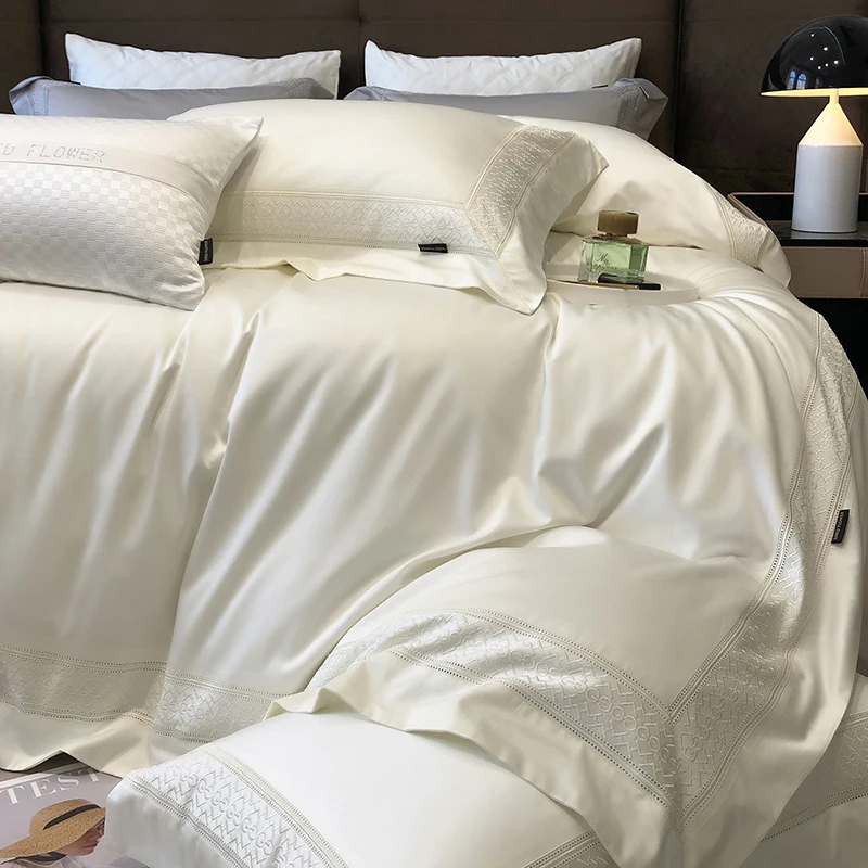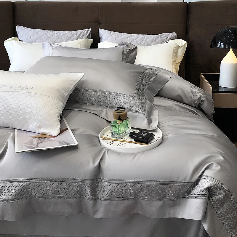Transform your bedroom into an oasis of luxury with our Luxurious 1000TC Egyptian Cotton Embroidered Bed Linen Set. This exquisite bedding set, available in both King and Queen sizes, provides a sumptuous, silk-like feel that guarantees a blissful night's sleep.