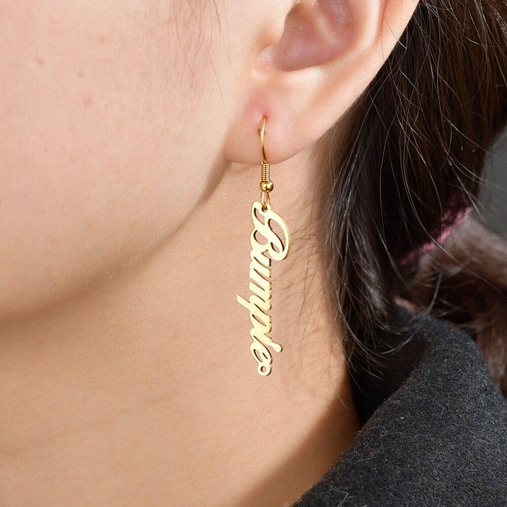 Personalized Stainless Steel Name Dangle Earrings - Elegant Custom Jewelry for Women