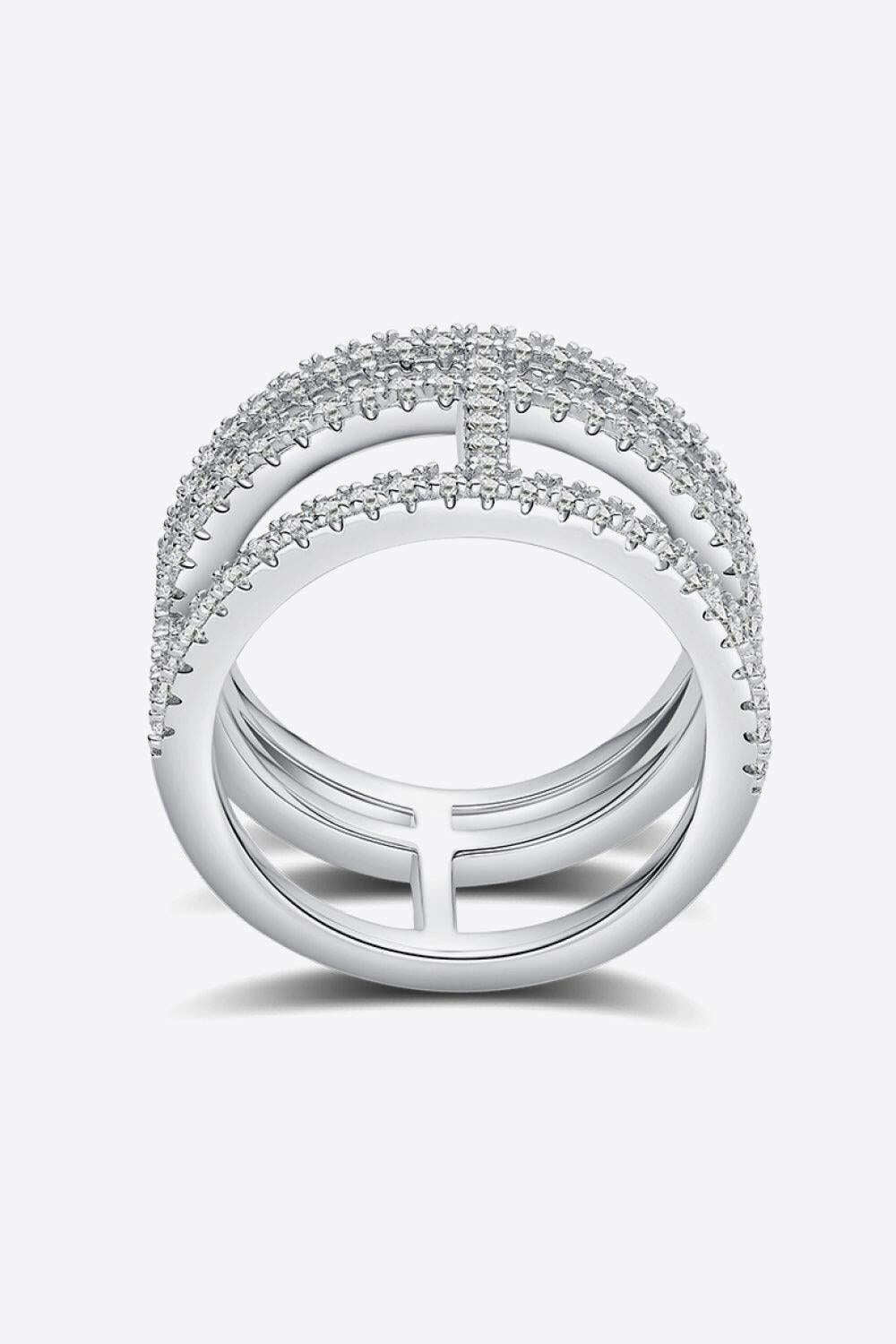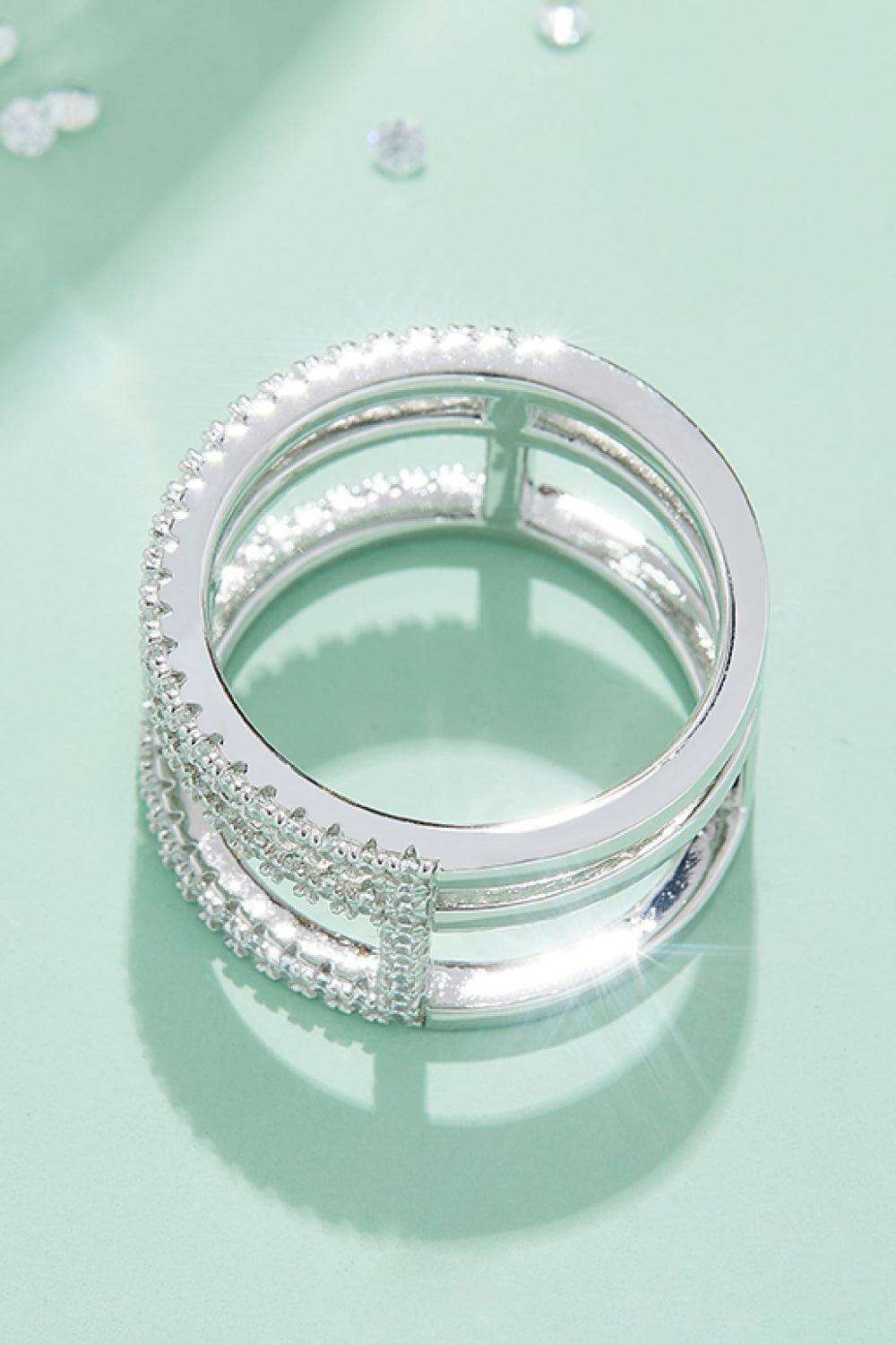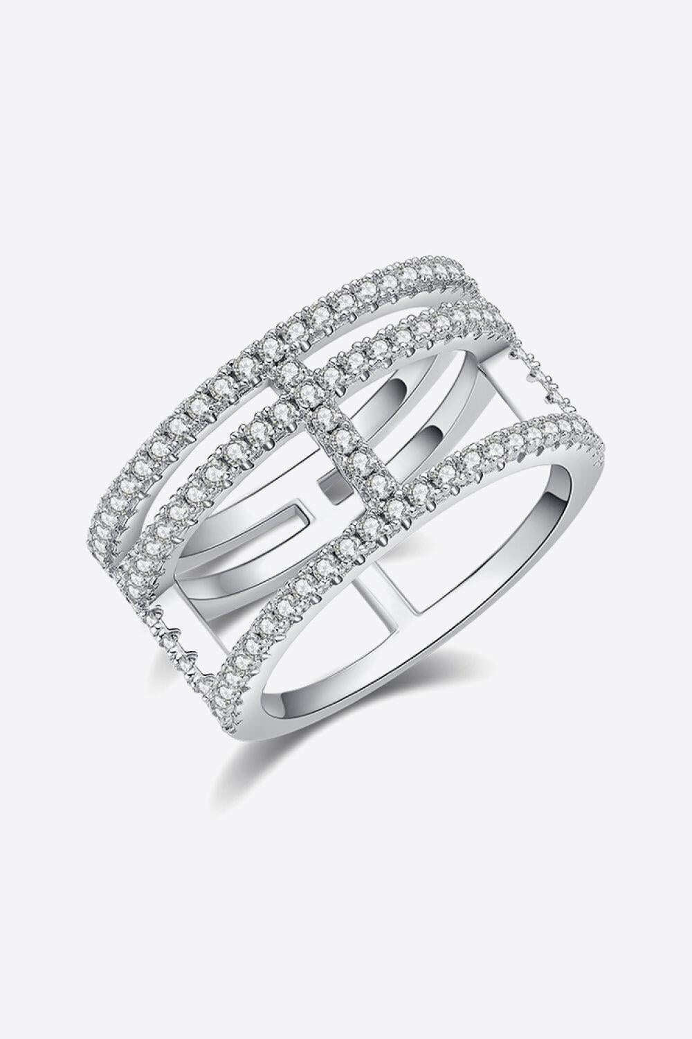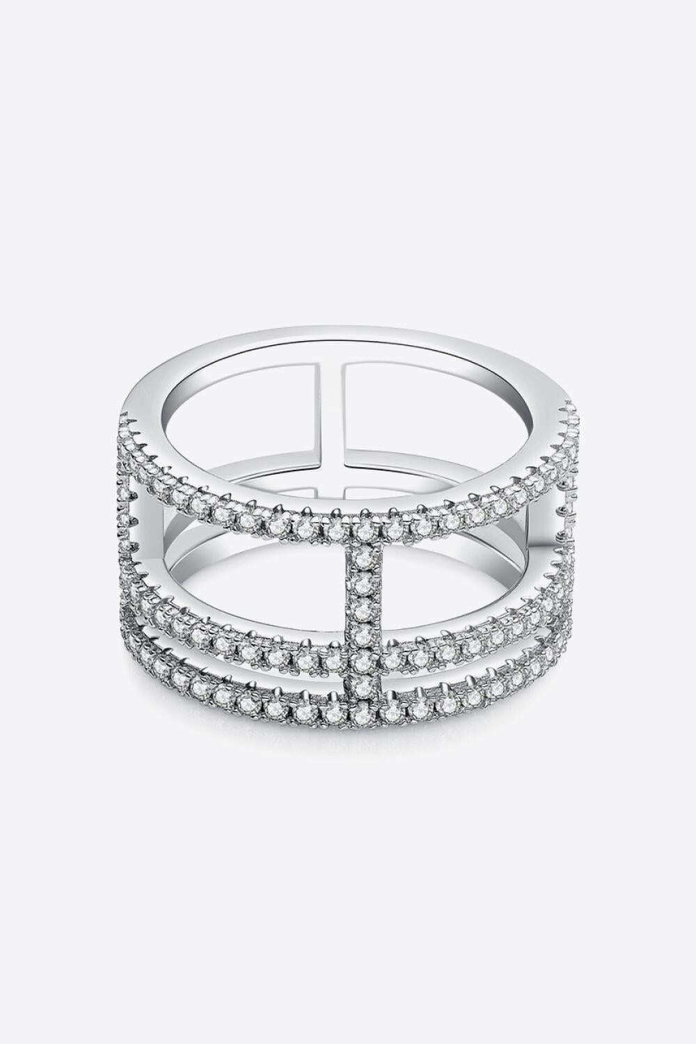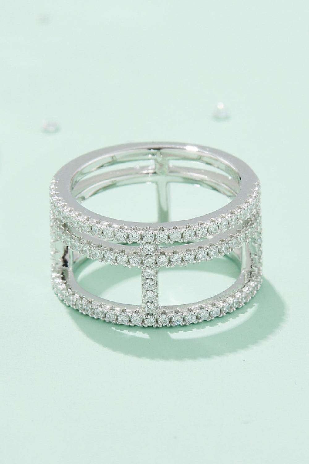 Platinum-Plated Lab-Diamond Wide Band Ring - Chic Cutout Design