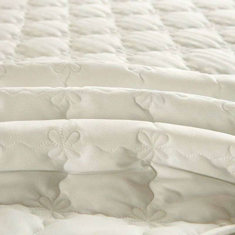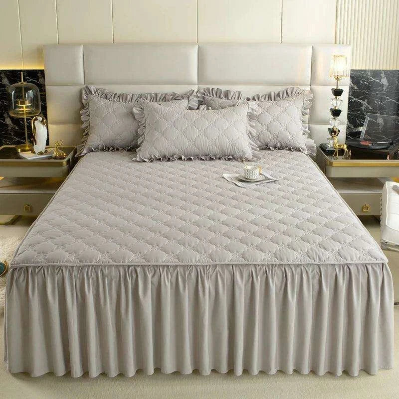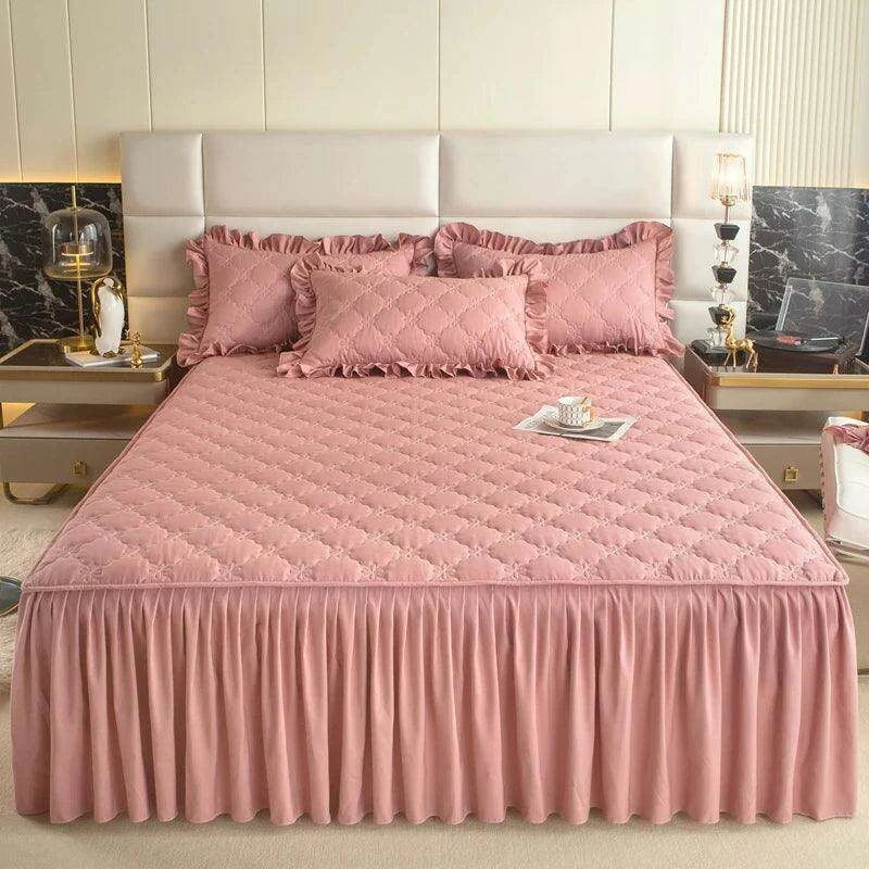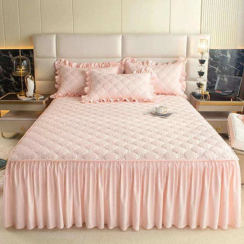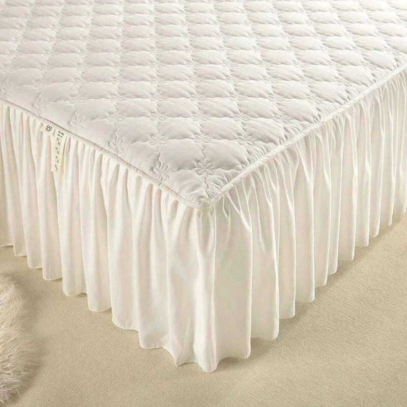 Plush Quilted Mattress Protector with Solid Color Bed Skirt - Skin-friendly Bedspread (No Pillowcase)