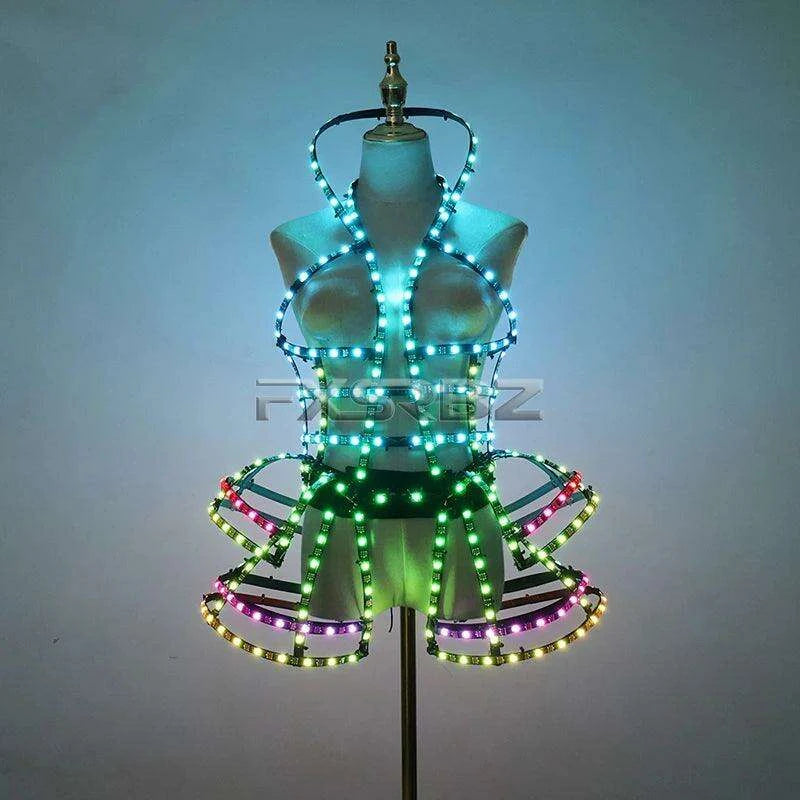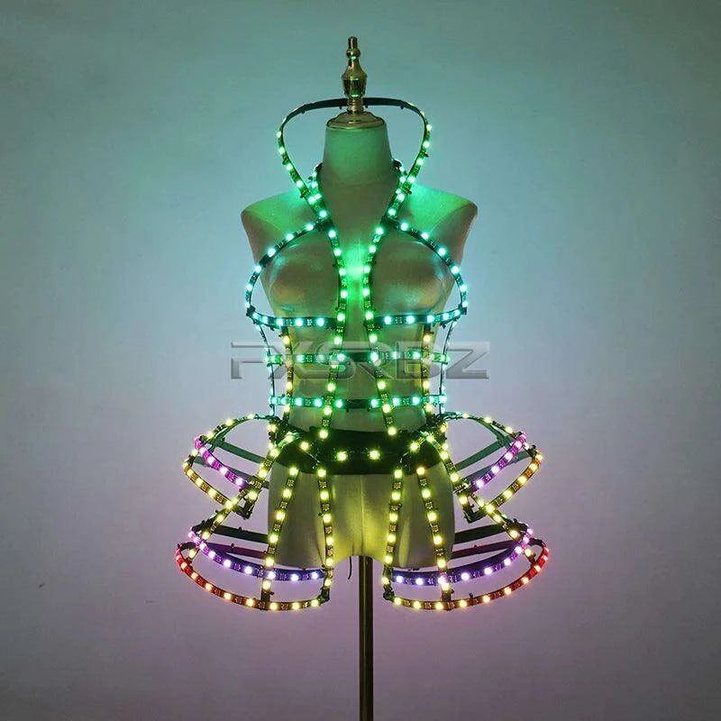 Radiant LED Dance Cage Outfit with Remote Control - Dazzle the Night Away!..