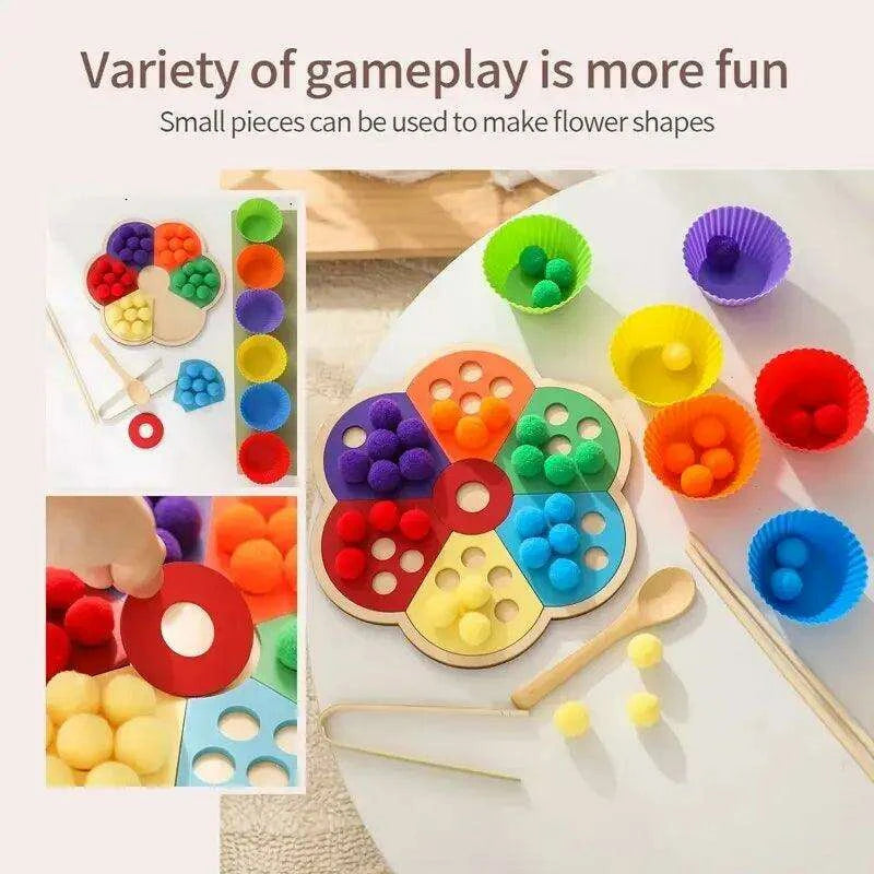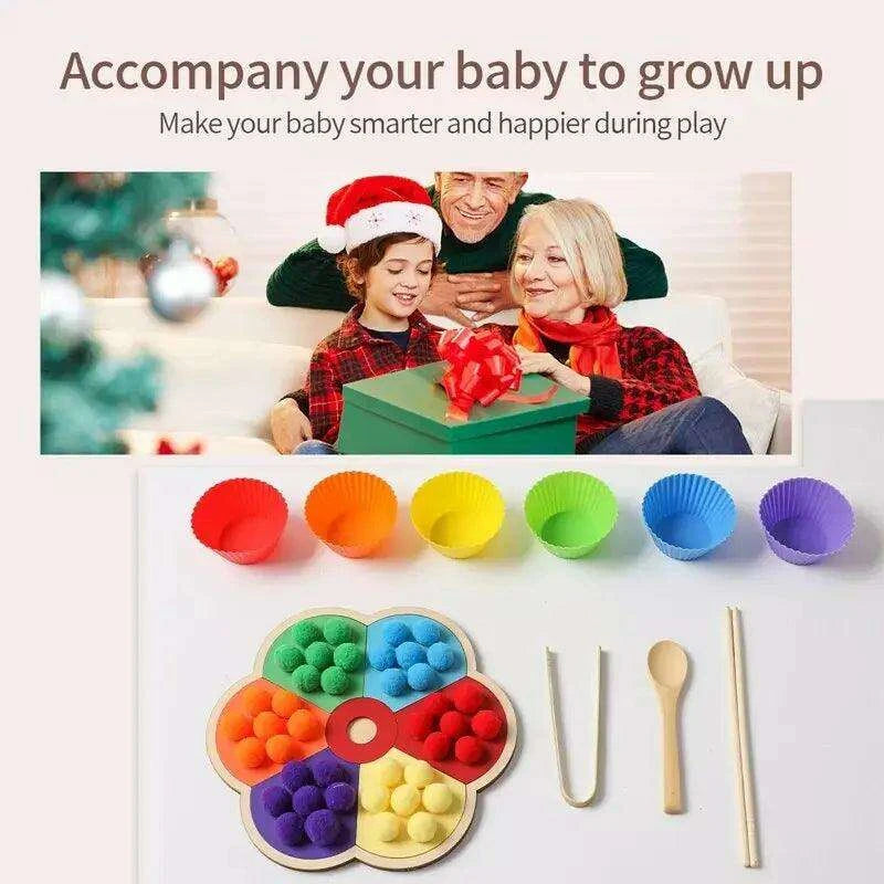 Rainbow Woodland Montessori Educational Toy - Wood & Wool Learning Board