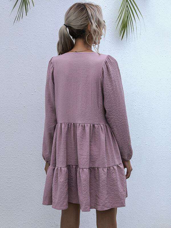 Retro Elegance Lantern Sleeve Midi Dress for Women - Vintage Charm Collection