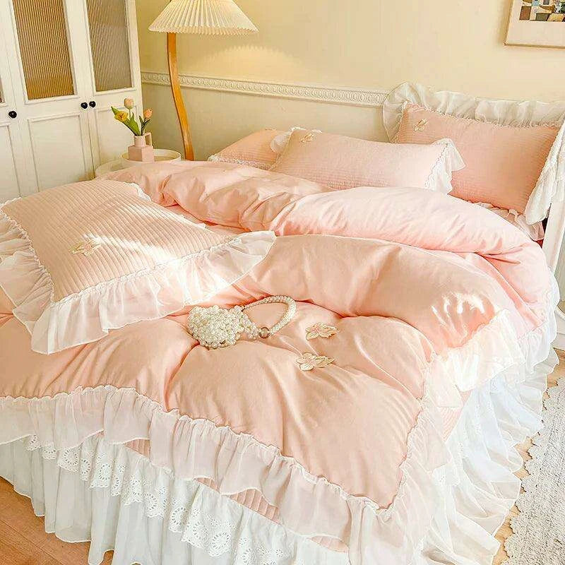 Transform your bedroom into a whimsical retreat with the Princess Dream Lace Ruffles Cotton Bedding Set. Designed for those who cherish elegance and comfort, this luxurious bedding set combines functionality with a touch of royal charm.