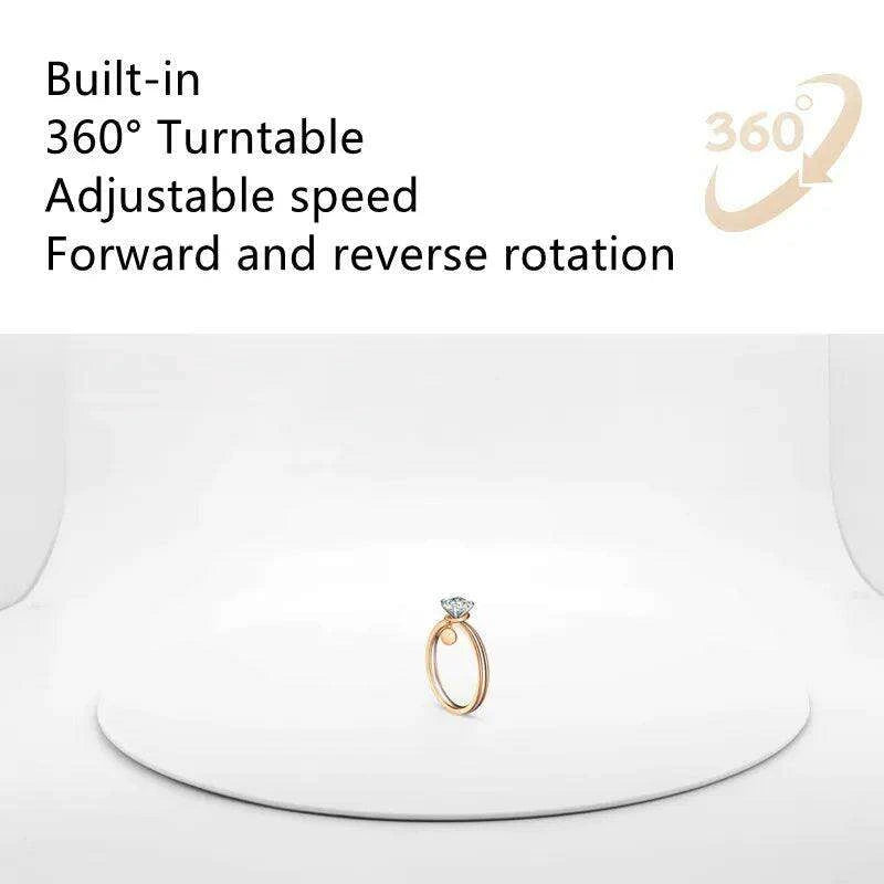 - Built-in Rotating Turntable: Effortlessly showcase your subject from every angle, making it perfect for jewelry photography and detailed video production.
