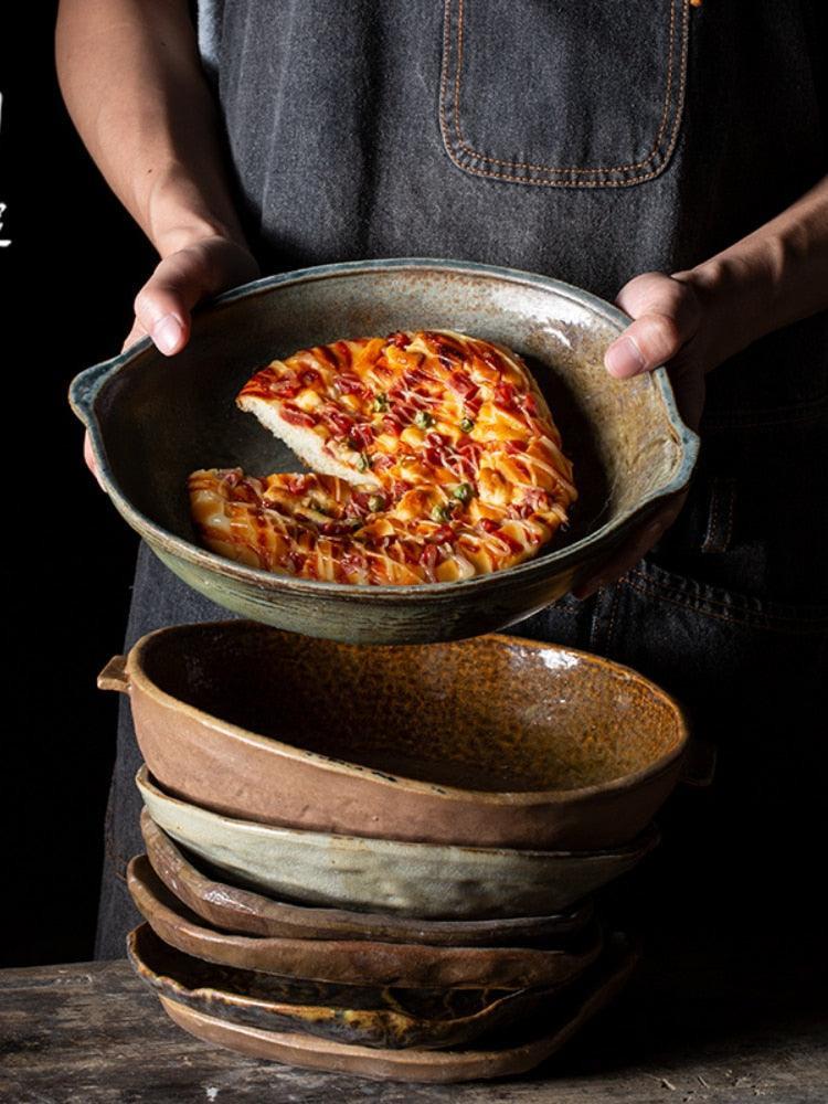 Tranquil Earth Artisan Wood-Fired Pottery Platter - Handcrafted Rustic Dinnerware
