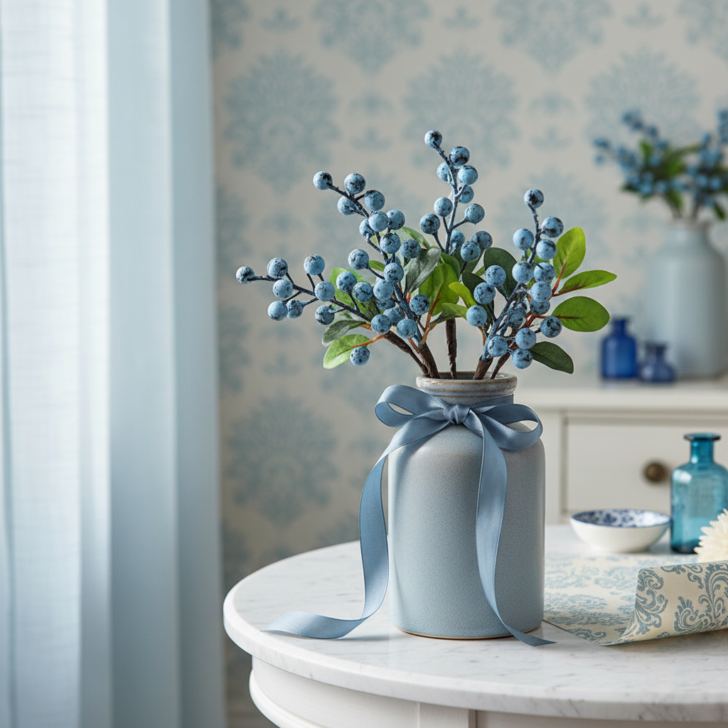 Transform your space with the Single Acacia Bean Artificial Berry Flower Arrangement from Peekaboo Studio.