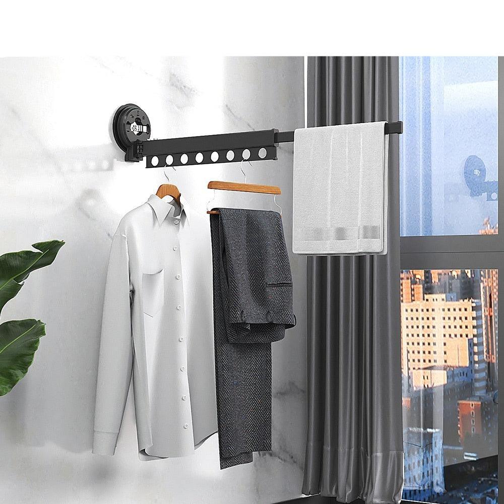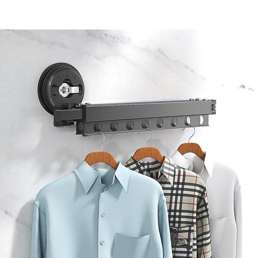Sleek Aluminum Folding Wardrobe Rack with Elegant Wall Mount and Easy Suction Cup Setup