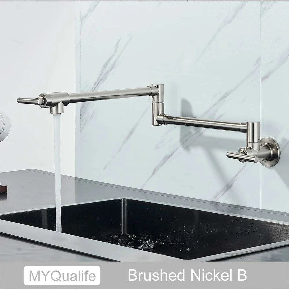 Elevate your kitchen's aesthetic with the Elegant Brushed Gold Brass Kitchen Pot Filler Faucet, a perfect blend of functionality and style. This exquisite faucet is designed to be a stunning focal point in your culinary space.