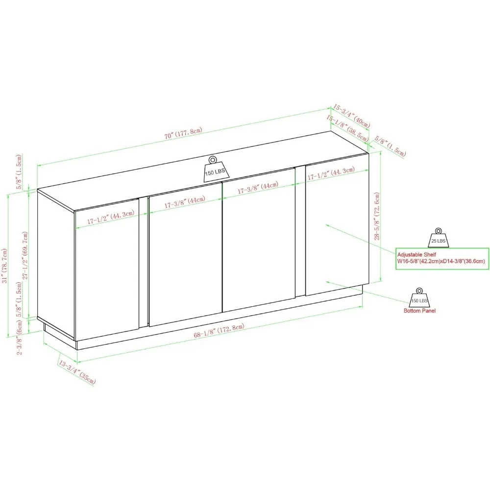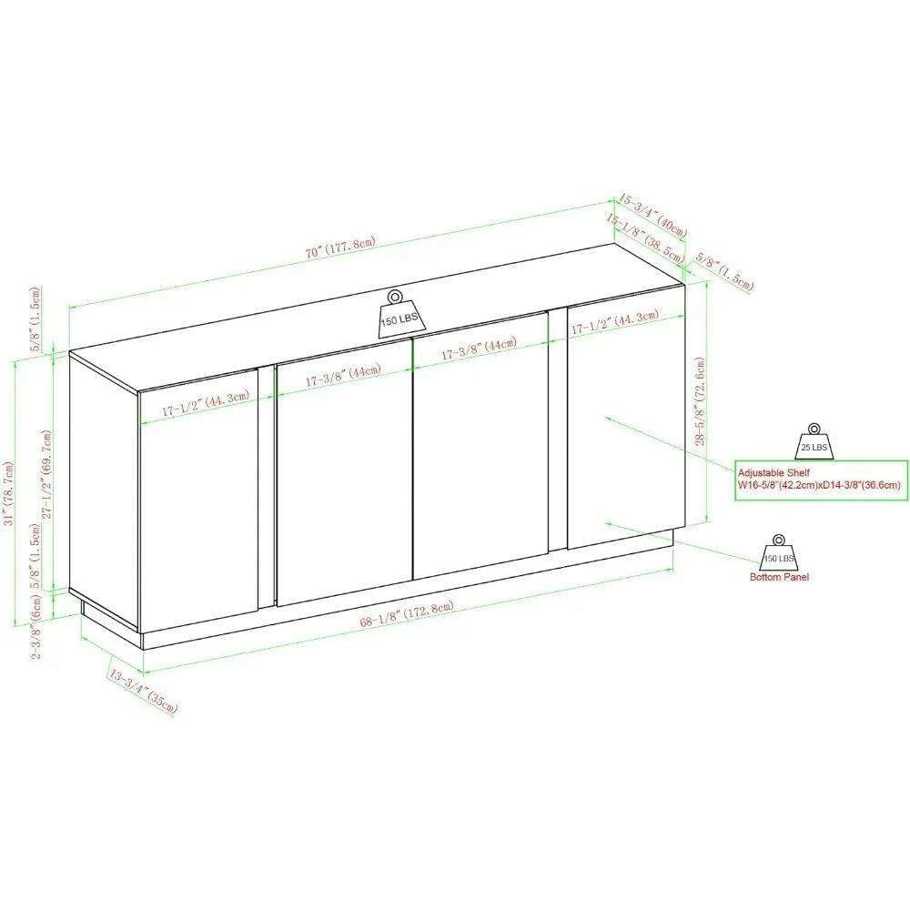 - Ample Dimensions: Measuring 15.75 inches deep, 70 inches wide, and 31 inches high, it provides generous storage while maintaining a sleek profile.