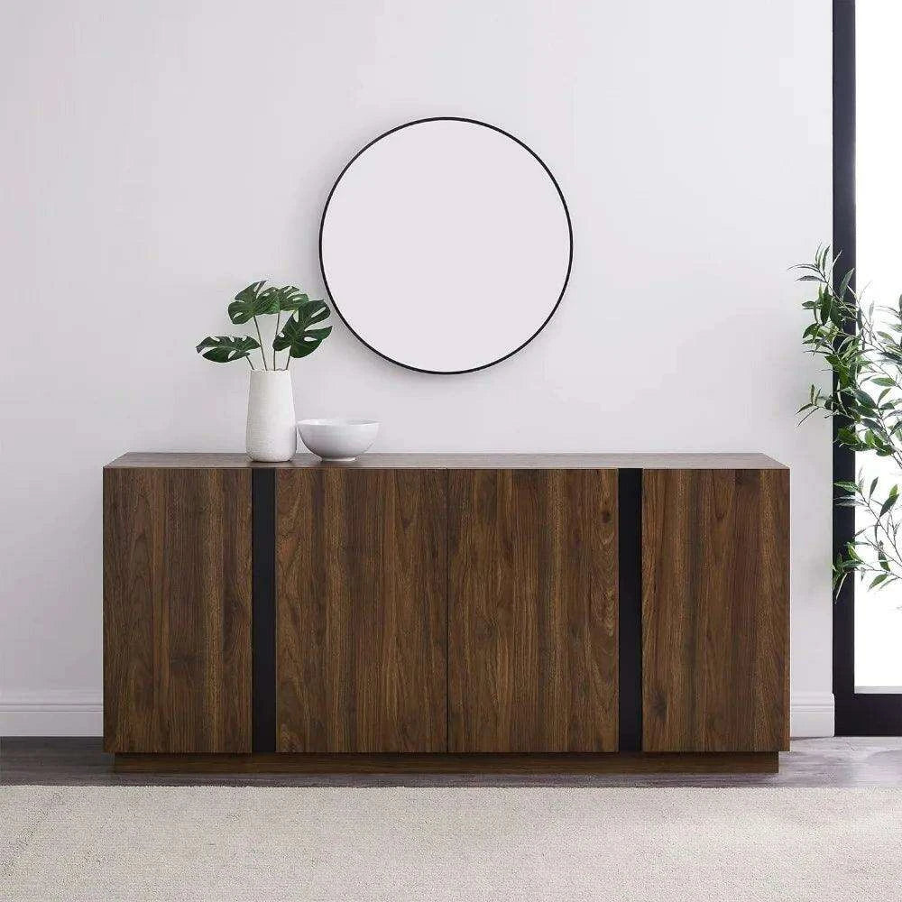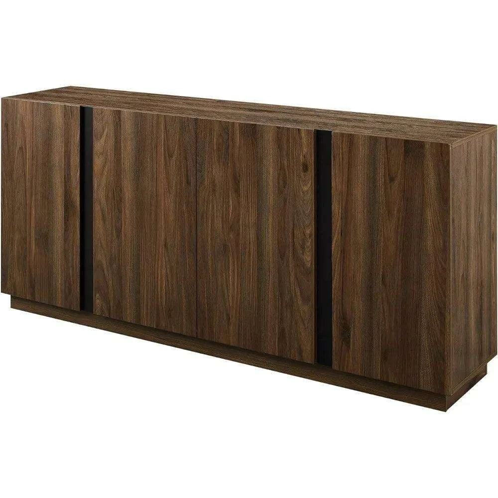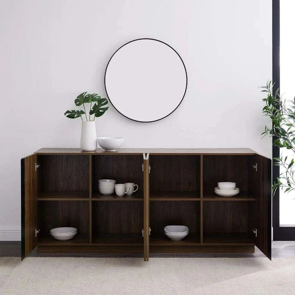 Sleek Contemporary Dark Walnut 4-Door Cutlery Storage Cabinet with Adjustable Shelves - Modern Design, 15.75" Deep x 70" Wide x 31" High, Free Shipping Included