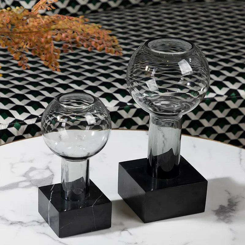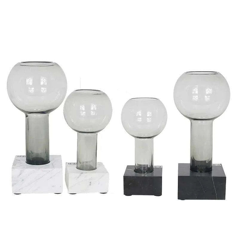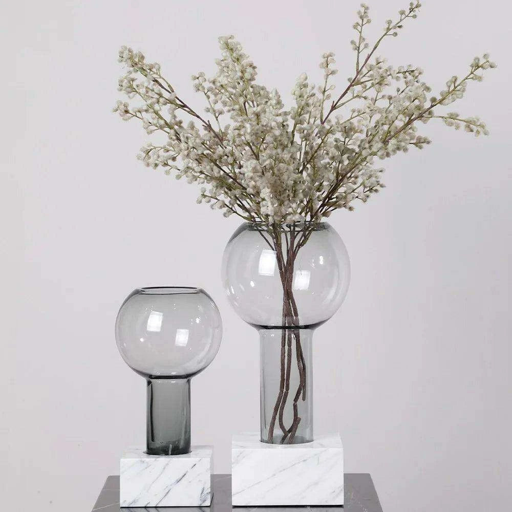Sleek Modern Glass Vase Collection with Elegant Marble Base for Home Aesthetics and Plant Display