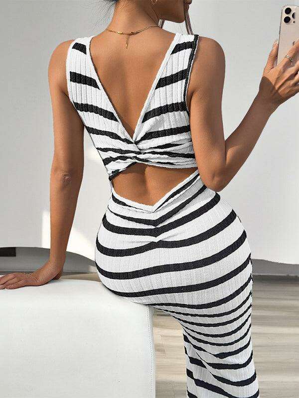 Sleek Striped Sleeveless Dress with Elegant Tailored Fit - Très Elite- Très Elite