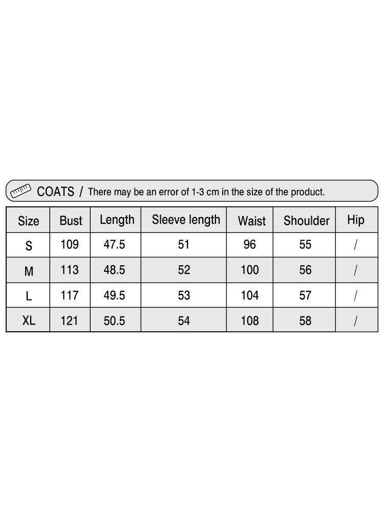 - Size S: Shoulder: 56cm, Bust: 114cm, Waist: 104cm, Sleeve Length: 54cm, Length: 50cm