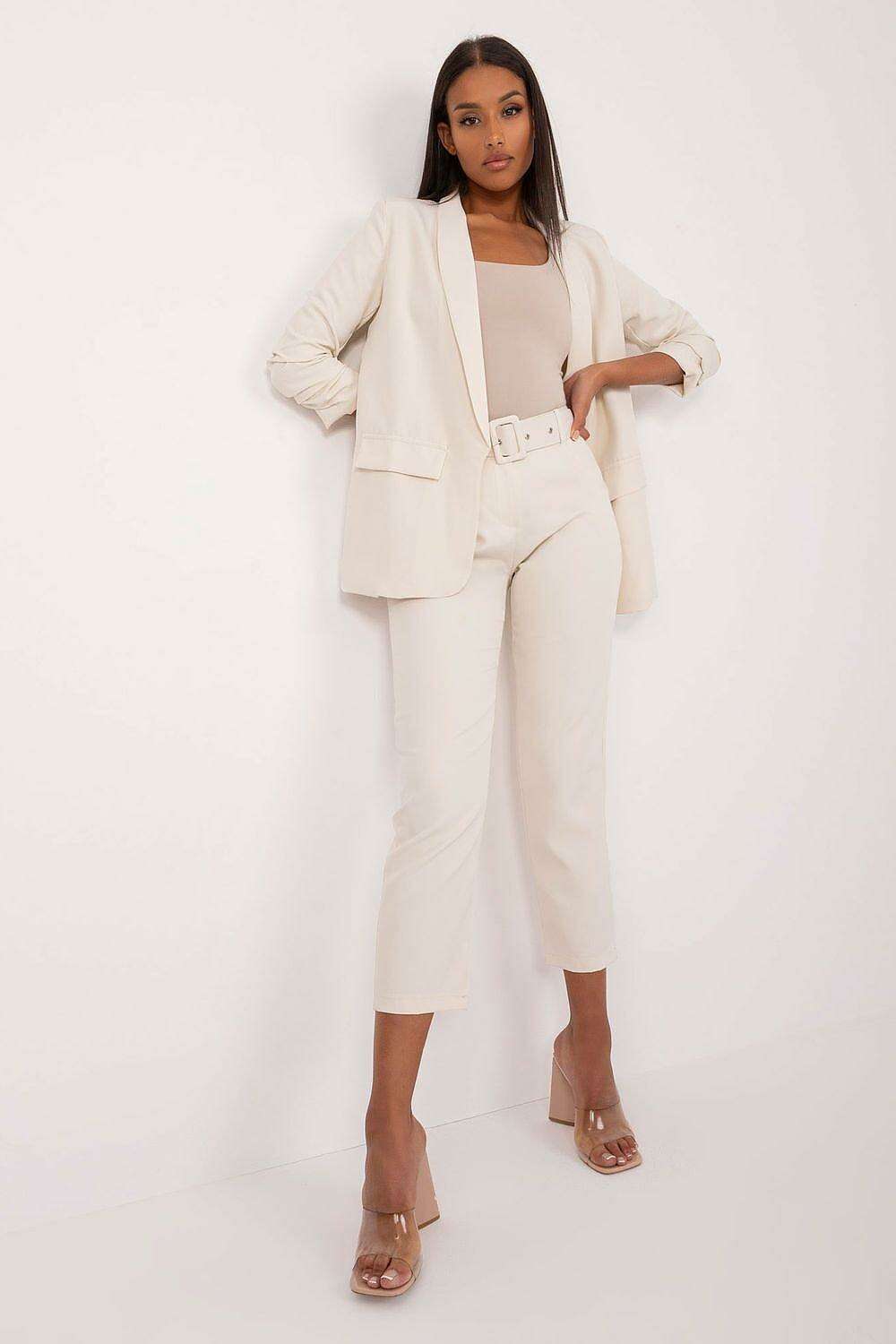 • Functional Details: Equipped with a fastened belt and practical slip pockets, these trousers combine style with utility.