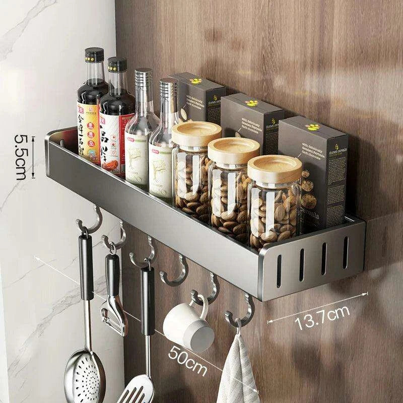 Elevate your home decor with our Space-Saving Aluminum Kitchen Shelf System. Its top-notch quality and smart design optimize your storage space effortlessly, making it an essential addition to any kitchen.