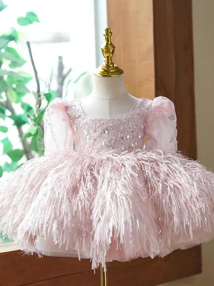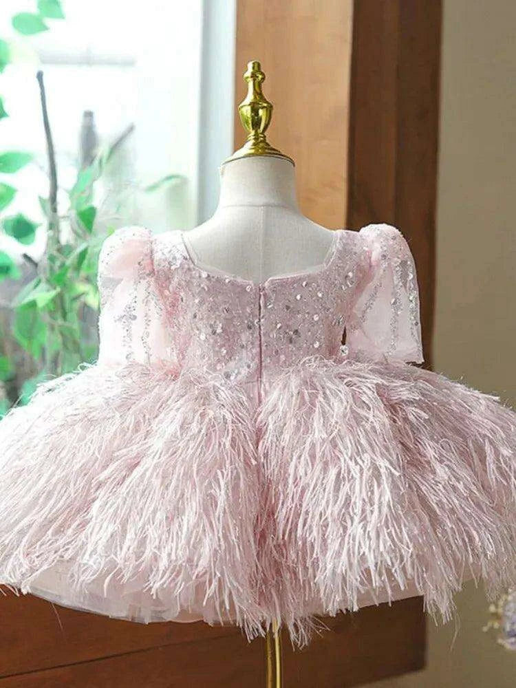 Step into a world of magic and elegance with our Enchanted Pink Princess Sequin Gown. This exquisite dress is designed to make every little girl feel like royalty, perfect for weddings, birthdays, baptisms, and festive celebrations such as Eid.