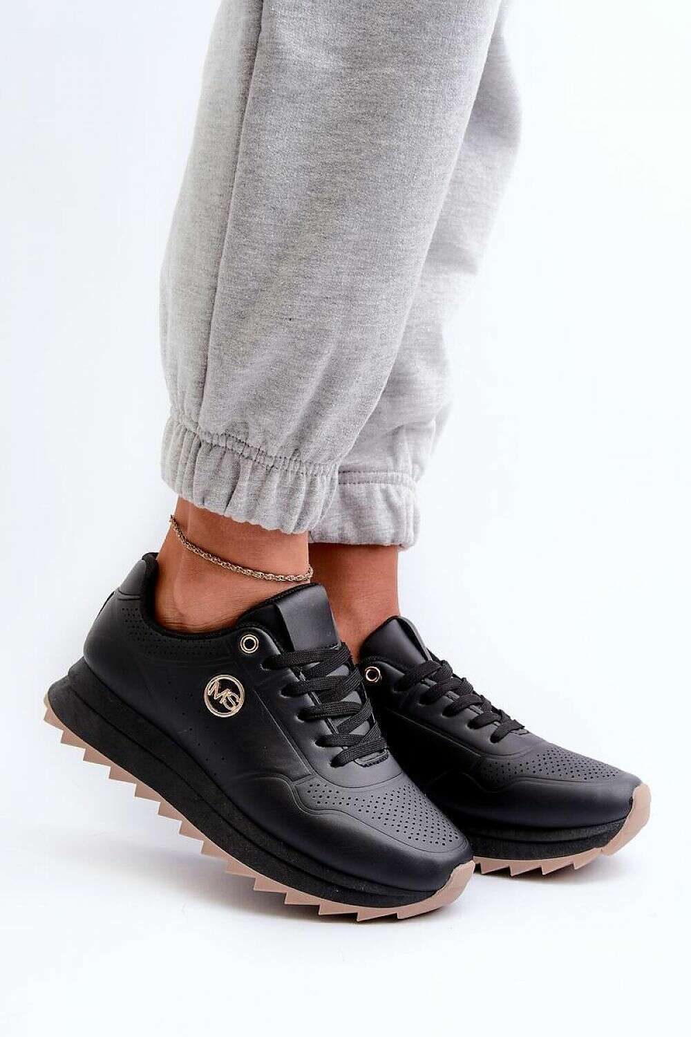 Women's sneakers made of eco leather. Set on a platform and a light anchor. Gold detail adds to their elegance, making them a perfect complement to many stylings. The soft insole will ensure comfort with every step!