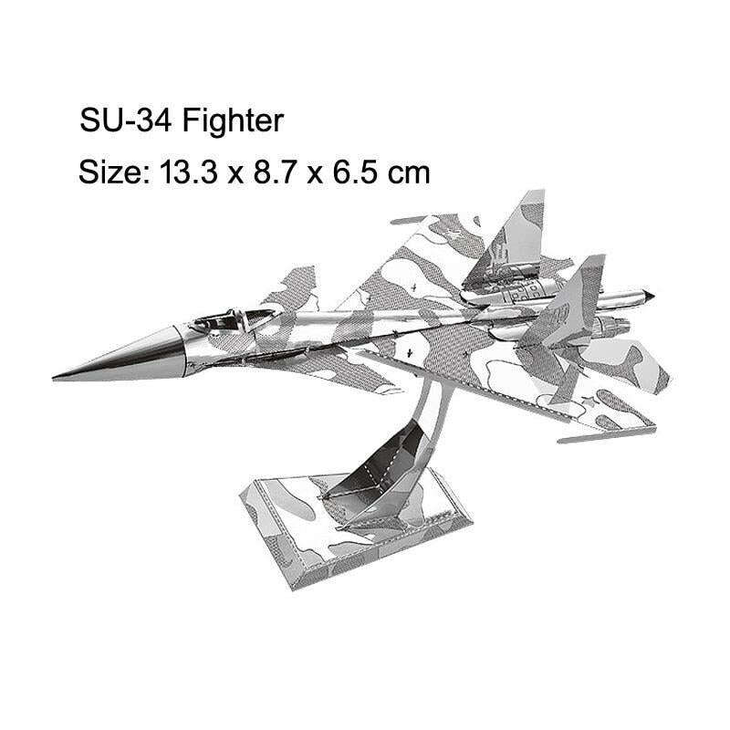 Stainless Steel 3D Jet Fighter Model Construction Set - Engaging DIY Puzzle for All Ages
