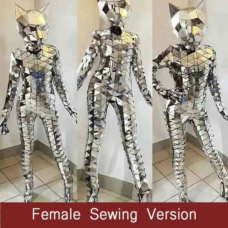 Stunning Mirror Effect Bodysuit for Adult Performers - Show-Stopping Costume for Nightlife, Festivals, and Drag Events