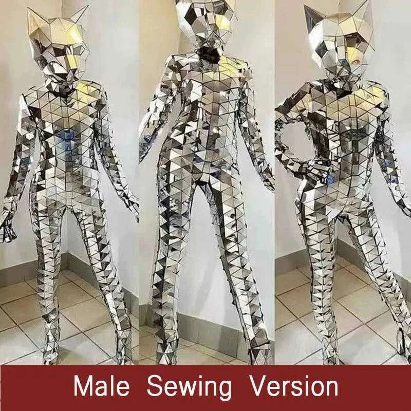 Stunning Mirror Effect Bodysuit for Adult Performers - Show-Stopping Costume for Nightlife, Festivals, and Drag Events