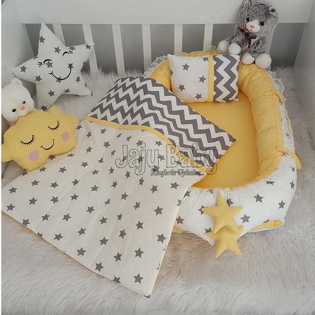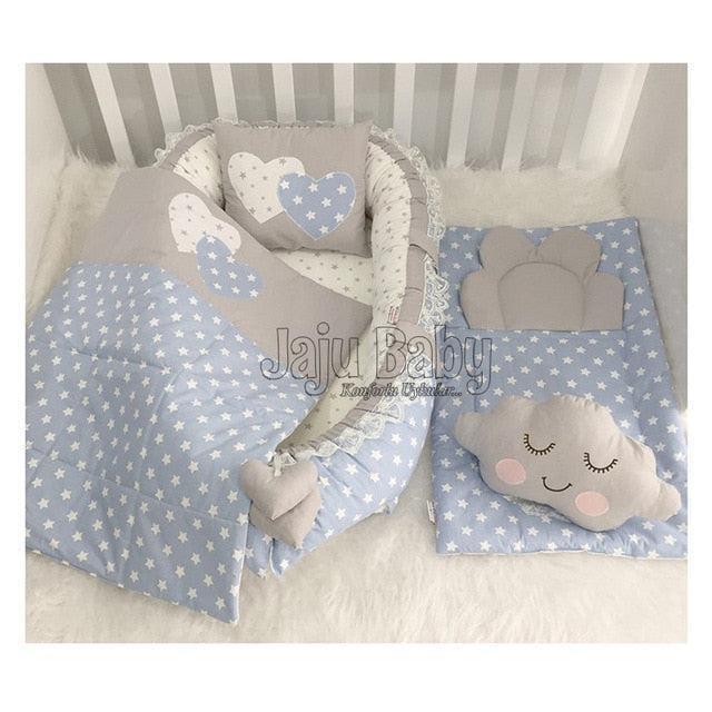 Transform your baby's nursery into a haven of luxury and comfort with our Elegant 5-Piece Gender-Neutral Cotton Crib Bedding Set, meticulously crafted in Turkey.