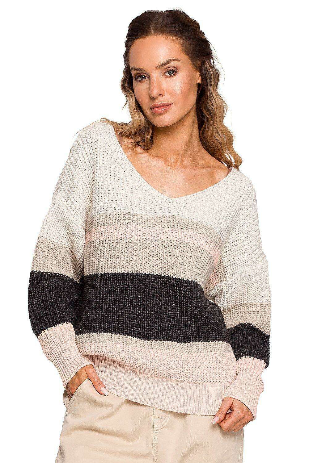 Introducing the Chic Striped V-Neck Knit Sweater - your ultimate companion for effortless style on chilly evenings. This loose-fitting sweater is designed to provide both comfort and elegance, making it a must-have staple in any wardrobe.