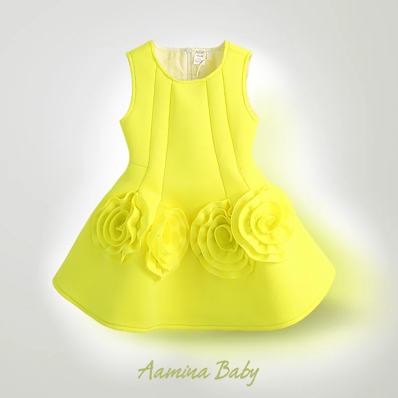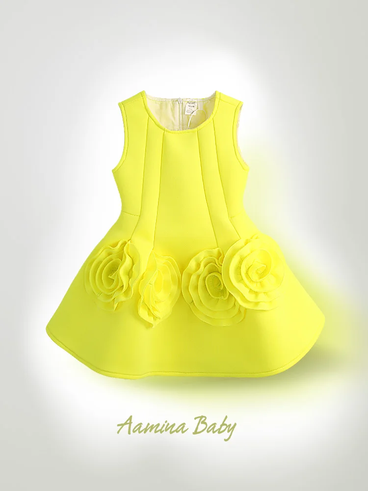 Elevate your little girl's wardrobe with our stunning 2024 Bright Yellow Floral One-Piece Dress. Designed for weddings, birthday parties, and any special occasion, this dress makes your young one the center of attention!