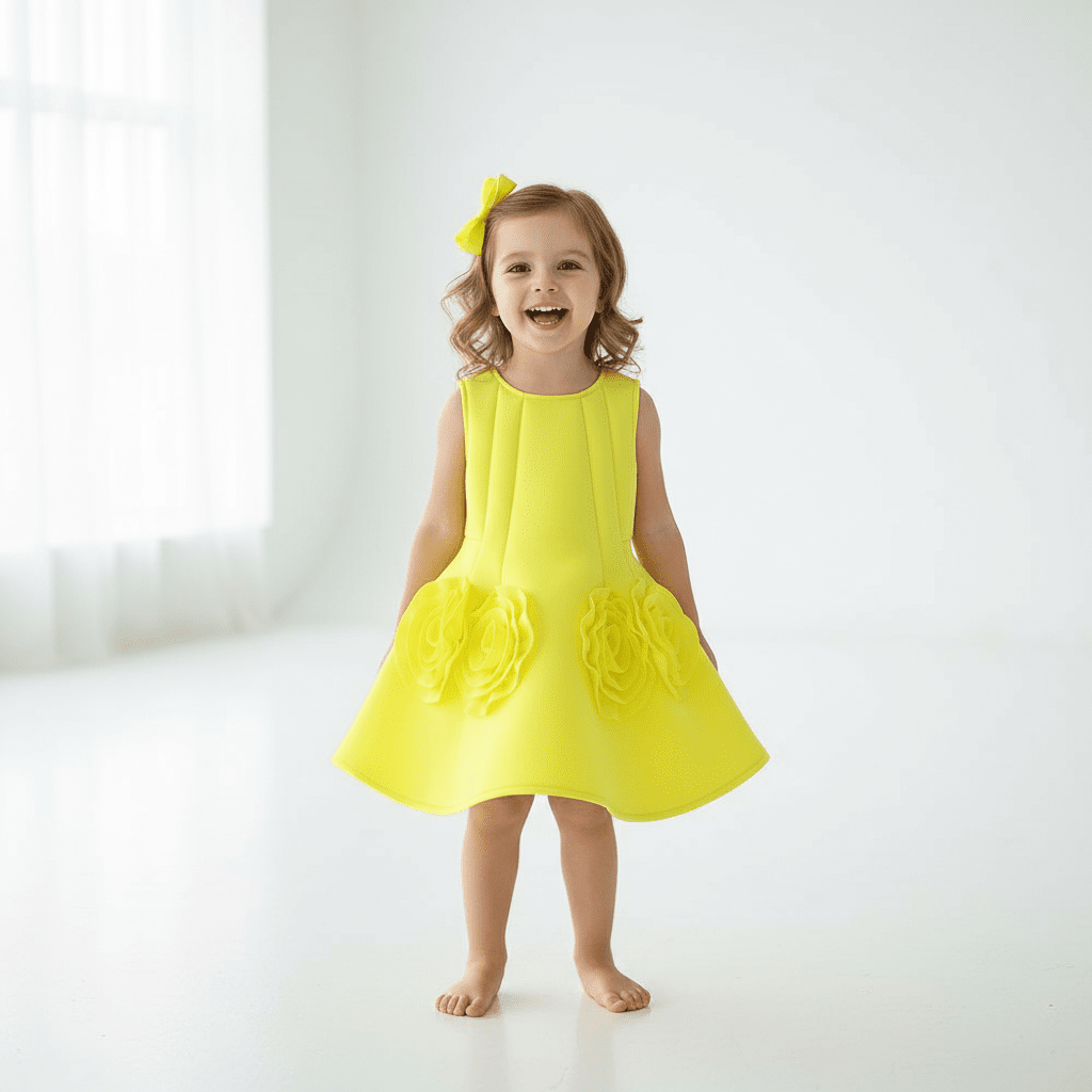 - Charming Design: Adorned with beautiful bright yellow flowers, this dress embodies elegance and joy, making it a must-have for every little fashionista.