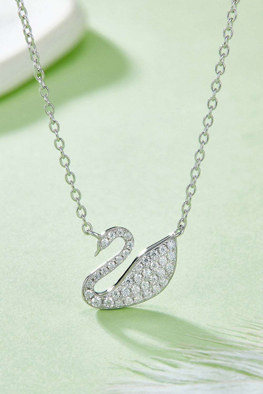 Swan Elegance Moissanite and Lab Created Diamond Necklace in 925 Sterling Silver