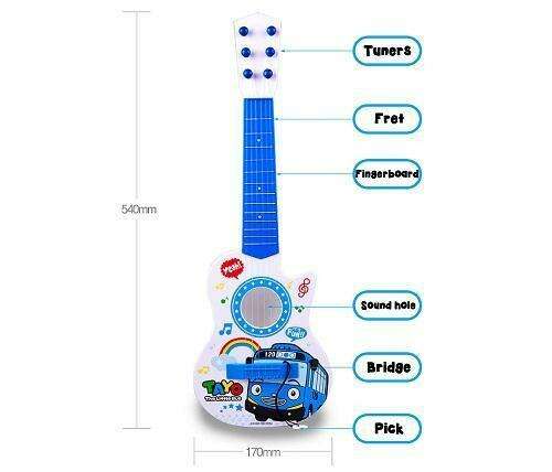 - Durable Material: Made from high-quality ABS, PP, and POM, the Tayo Mini Guitar is built to withstand the enthusiastic strumming of energetic young players.
