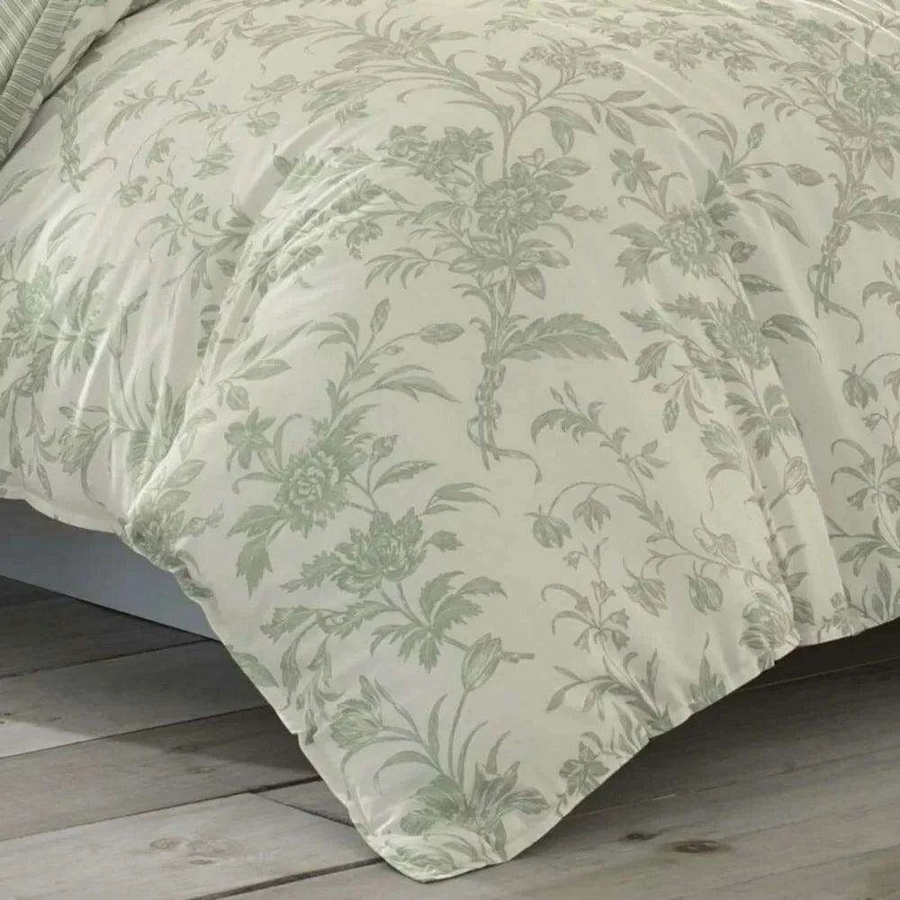 Tranquil Floral Jade Green Bedding Collection with Reversible Comforter - Luxury Cotton Set