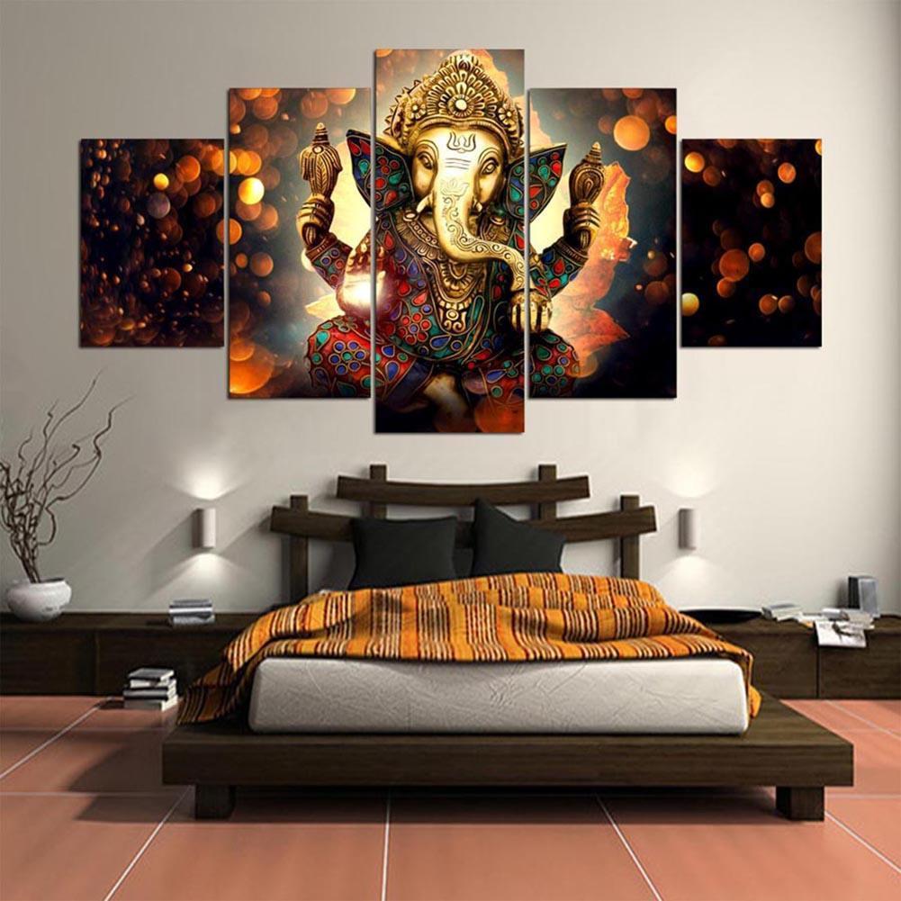 Tranquil Ganesha Elephant Art Ensemble | 5-Piece Fabric Décor Set..
