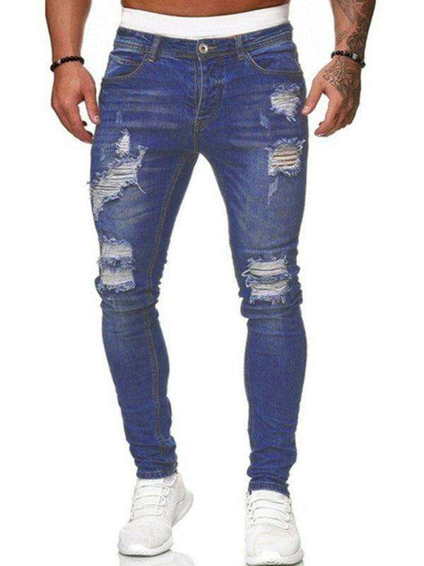 Fashionable Men's Distressed Skinny Denim Jeans for Trendy Gentlemen