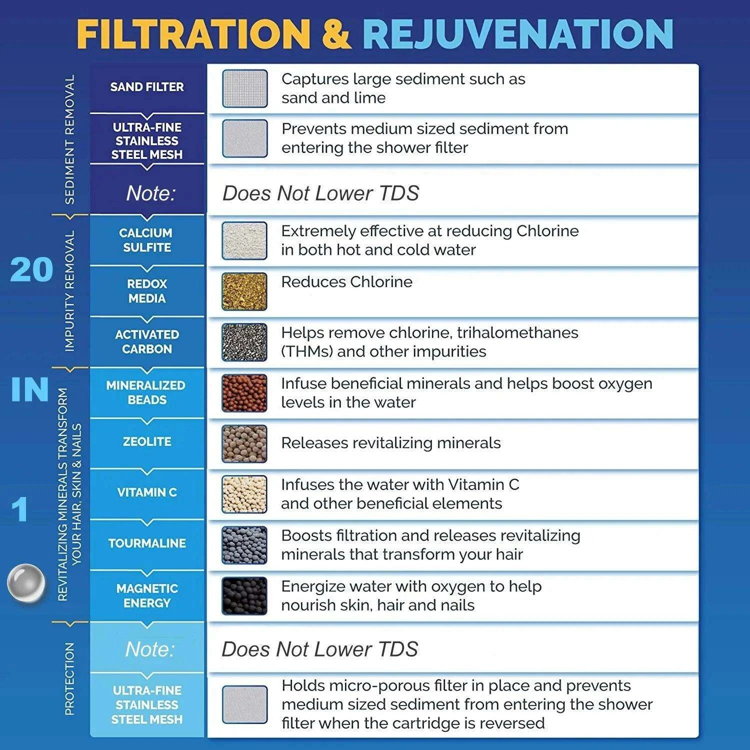 - Revitalizing Shower Water Filter: Our advanced Vitamin C filter efficiently reduces chlorine and heavy metals in your shower water, ensuring a pure and nurturing wash.
