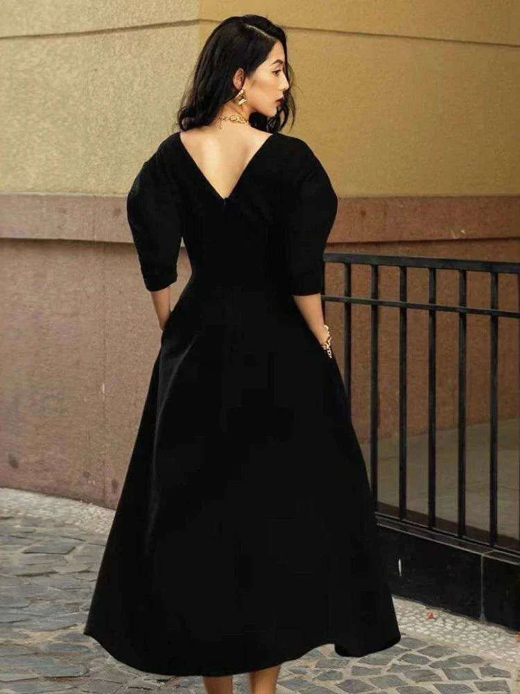 Introducing the Stylish V-Neck Short Sleeve Swing Dress for Women - High Waist Solid Evening Party Attire, a stunning addition to... Read more Read more