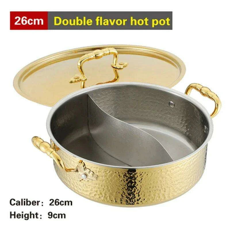 Transform your culinary journey and take your dining experience to new heights with the Deluxe Double Flavor Stainless Steel Hotpot. This remarkable kitchen essential is designed for both home chefs and professional kitchens, making it a versatile addition to any setting.