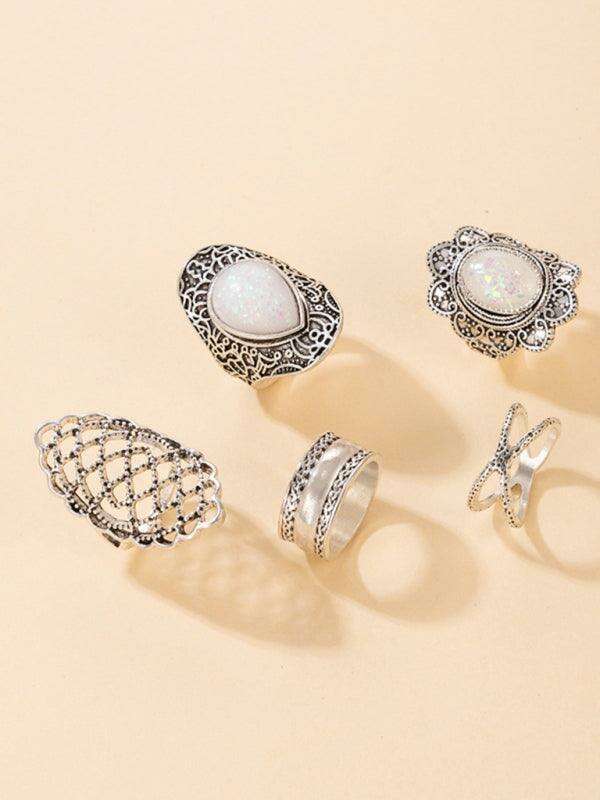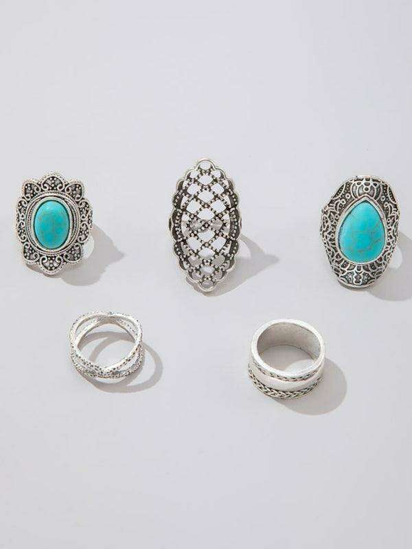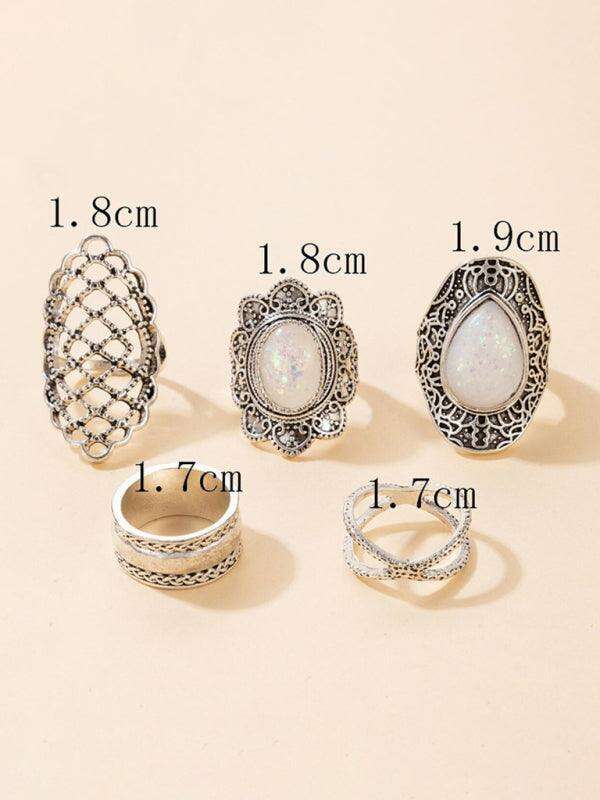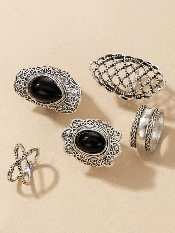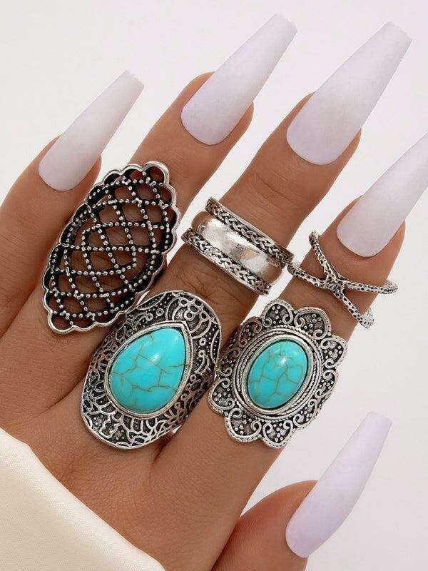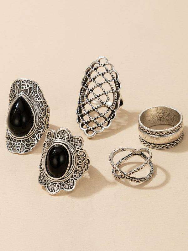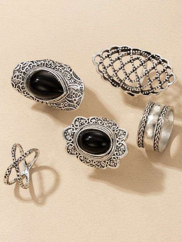 This set of 5 rings showcases a distinctive cross hollow design enhanced by exaggerated drip oil details, ensuring you’ll turn heads wherever you go. Not only do these rings add a bold statement to your everyday look, but they also embody a retro charm that complements any ensemble.